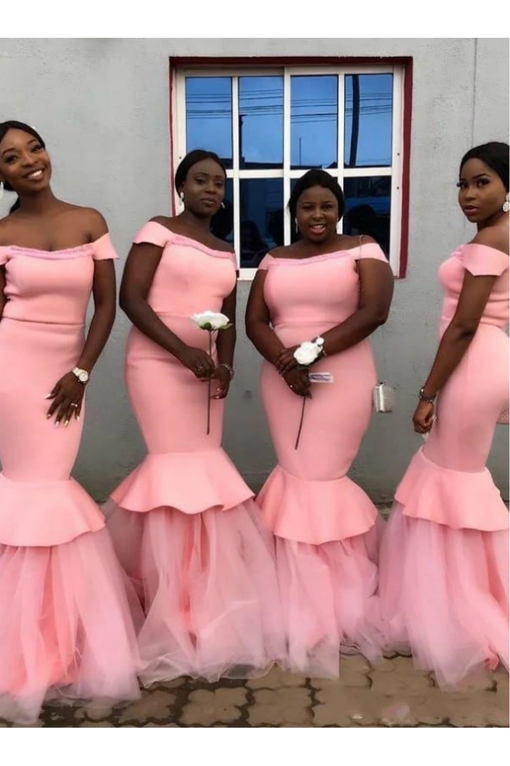 Long Pink Mermaid Off the Shoulder Bridesmaid Dresses 902186