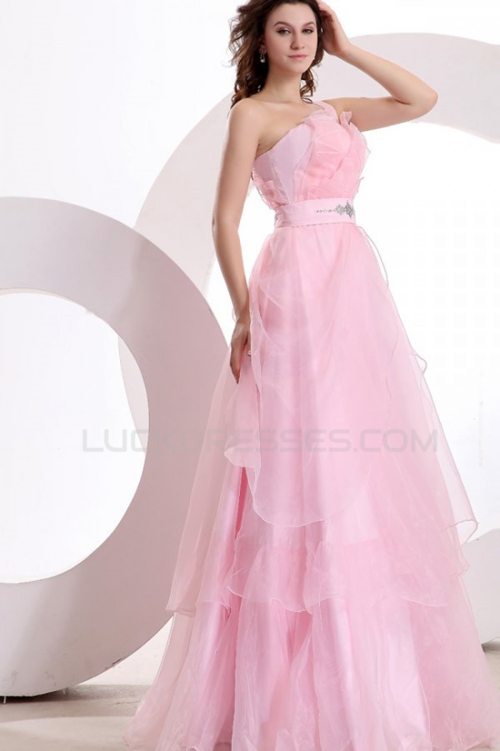 Long Pink One-Shoulder Prom Evening Formal Party Dresses ED010137