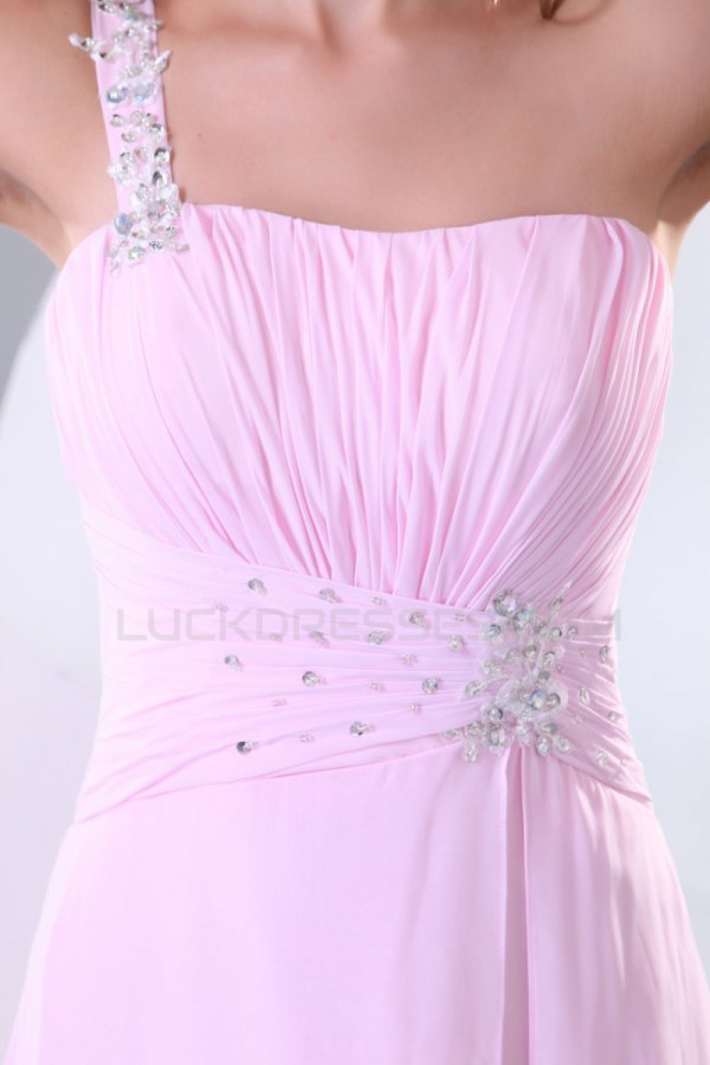 Long Pink One-Shoulder Prom Evening Formal Party Dresses ED010153