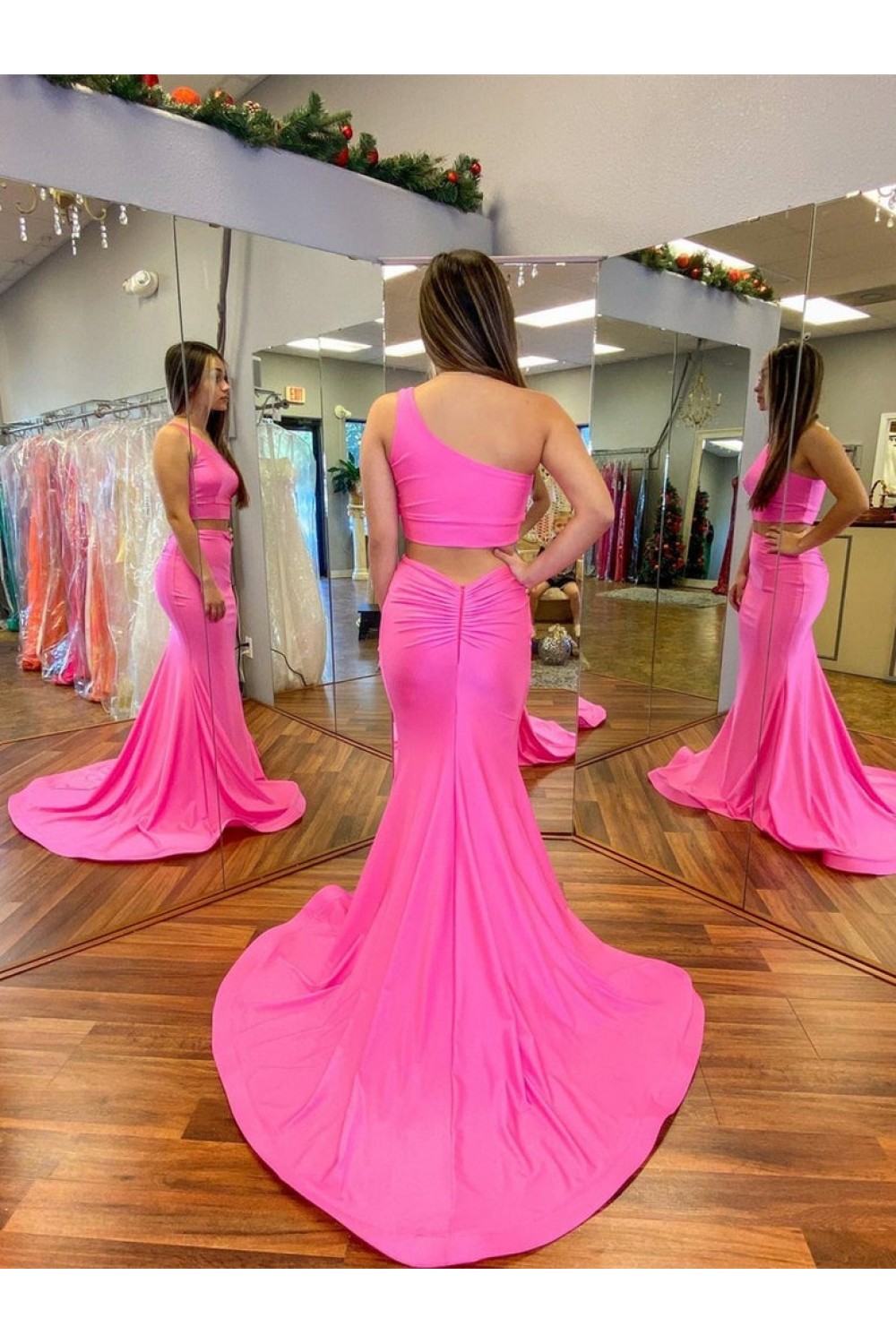 Long Pink Two Pieces Mermaid Prom Dresses Formal Evening Gowns 901667