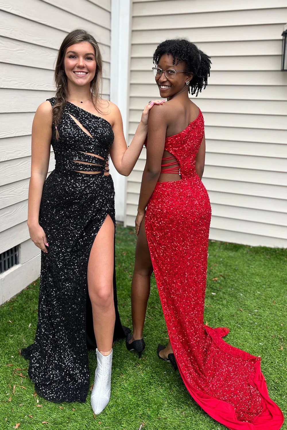 Long Purple One Shoulder Sequin Prom Dresses 801087