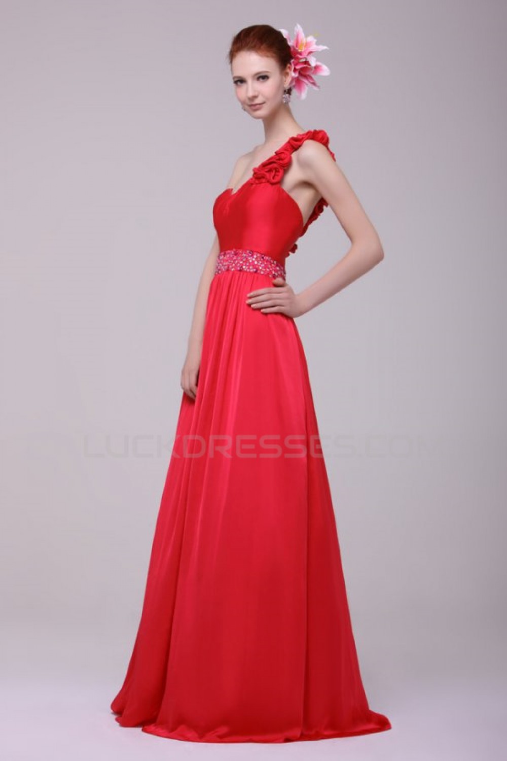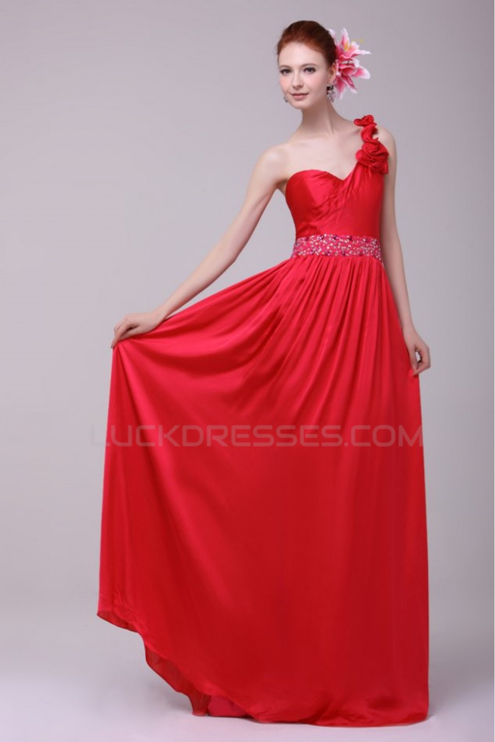Long Red One-Shoulder Beaded Prom Evening Formal Party Dresses ED010194