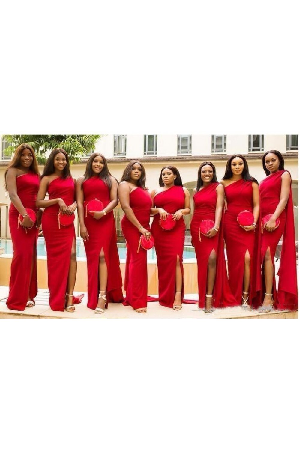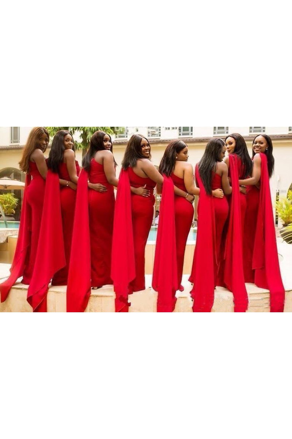 Long Red One Shoulder Bridesmaid Dresses 902411