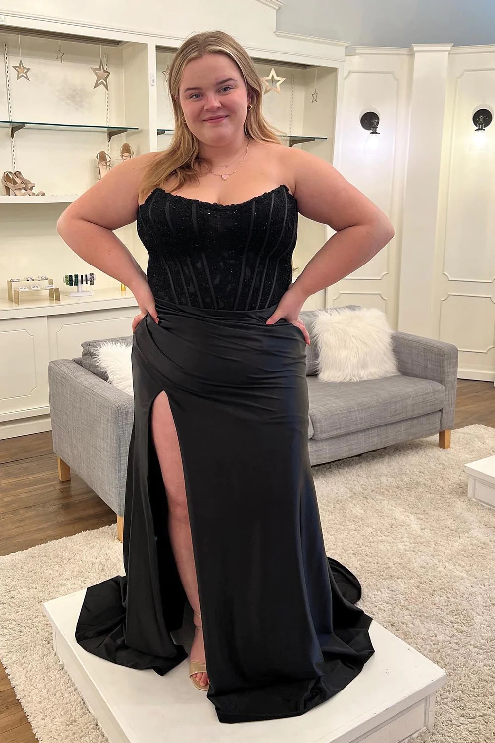 Long Red Strapless Mermaid Prom Dresses with Slit 801007