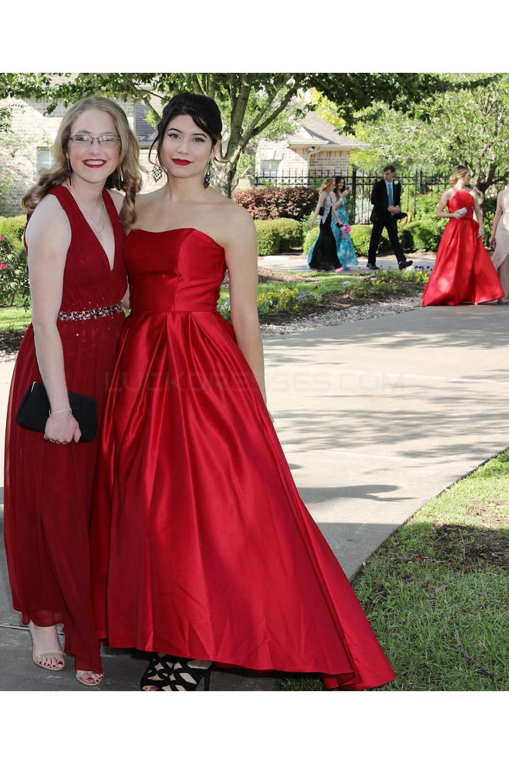 Long Red Strapless Prom Formal Evening Party Dresses 3020838