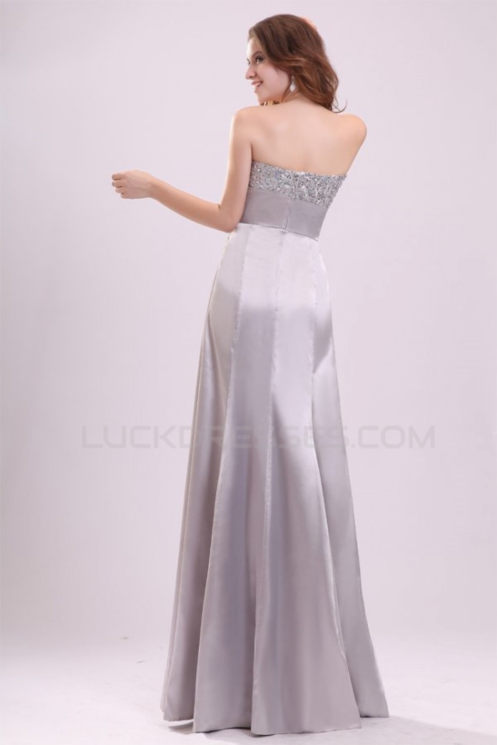 Long Silver Strapless Beaded Prom Evening Formal Party Dresses ED010089