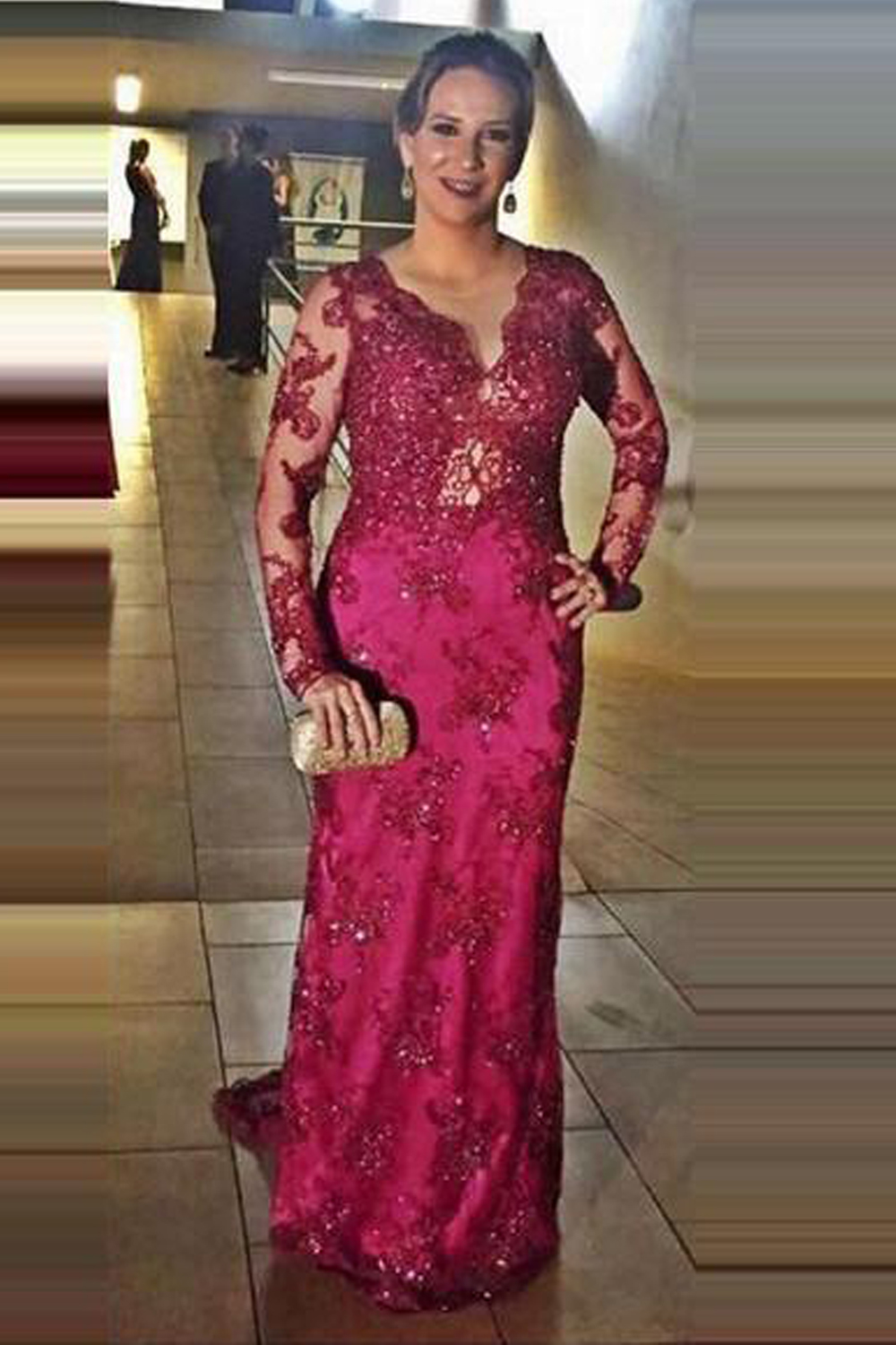 Long Sleeves Beaded Lace Mother of the Bride Dresses 702073