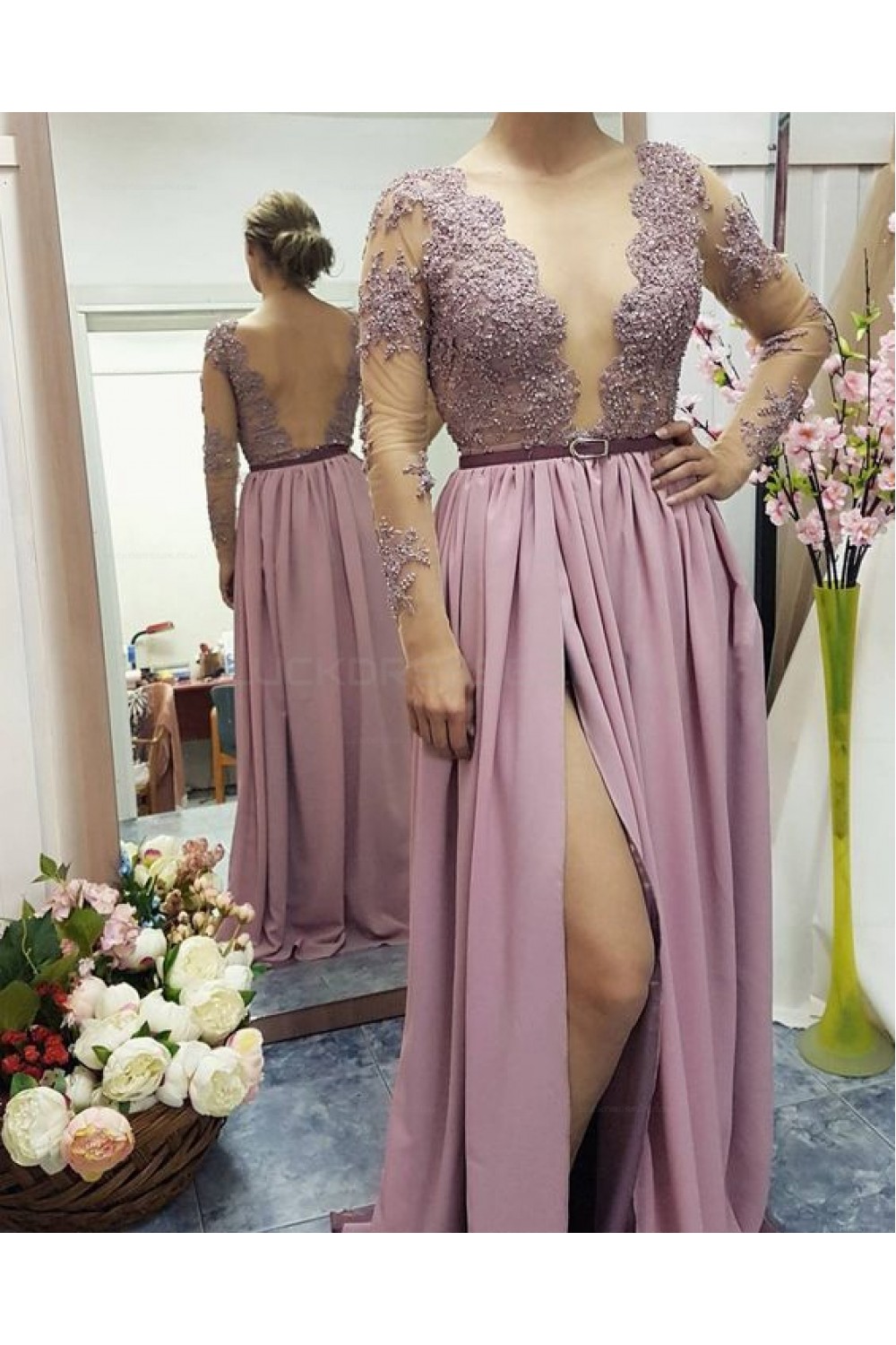 Long Sleeves Beaded Lace Prom Evening Party Dresses 3020664