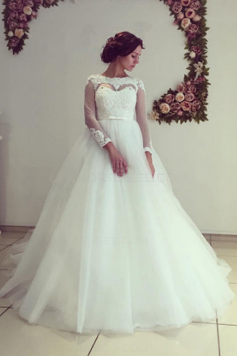 Long Sleeves Lace Ball Gown Wedding Dresses Bridal Gowns 3030323