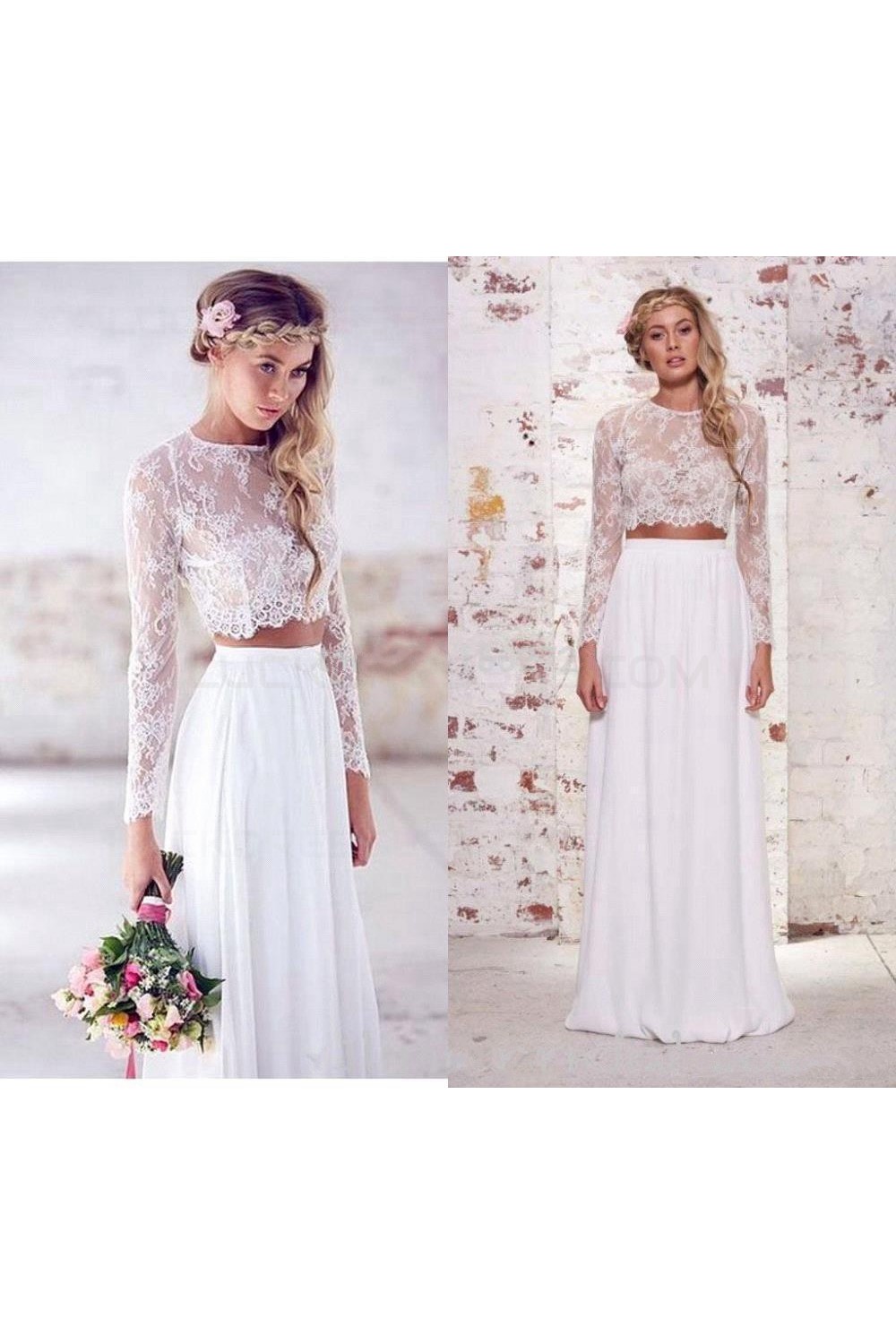 Long Sleeves Lace Chiffon Two Pieces Wedding Dresses Bridal Gowns 3030274