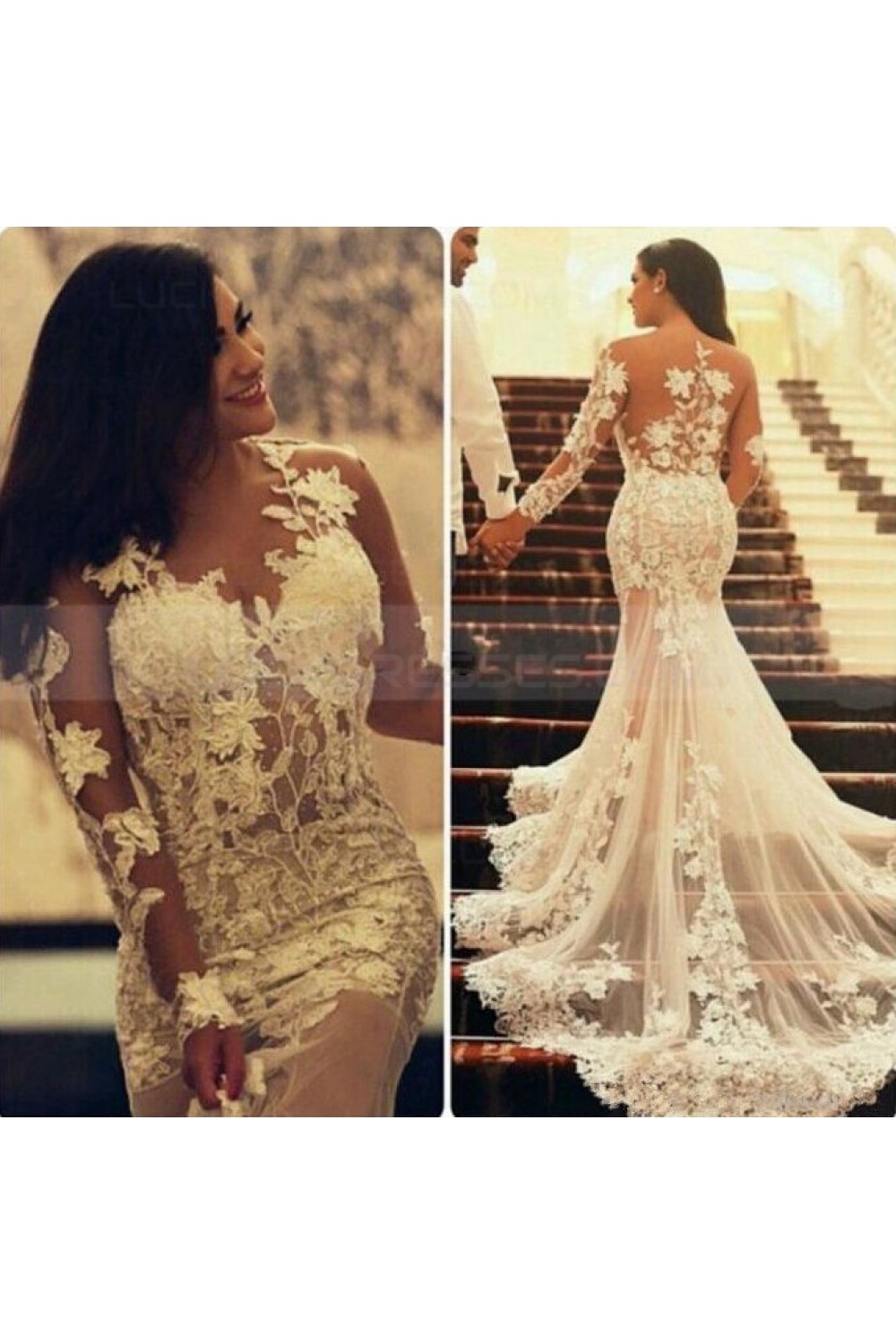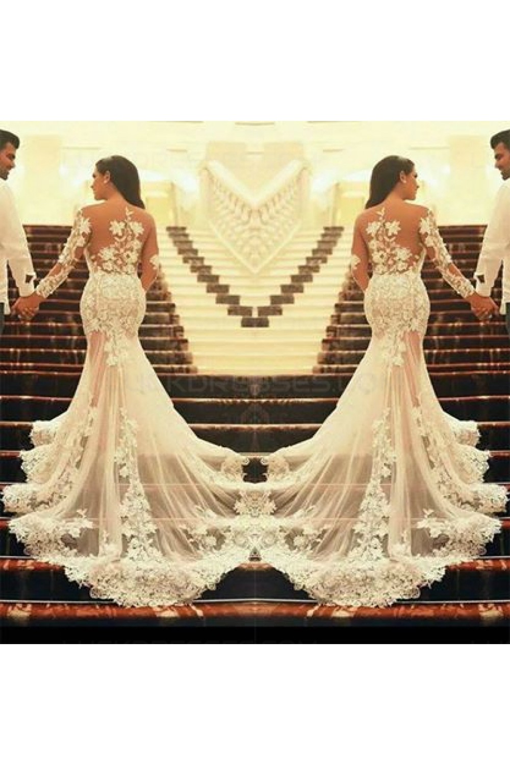 Long Sleeves Lace Sheer Mermaid Wedding Dresses Bridal Gowns 3030087