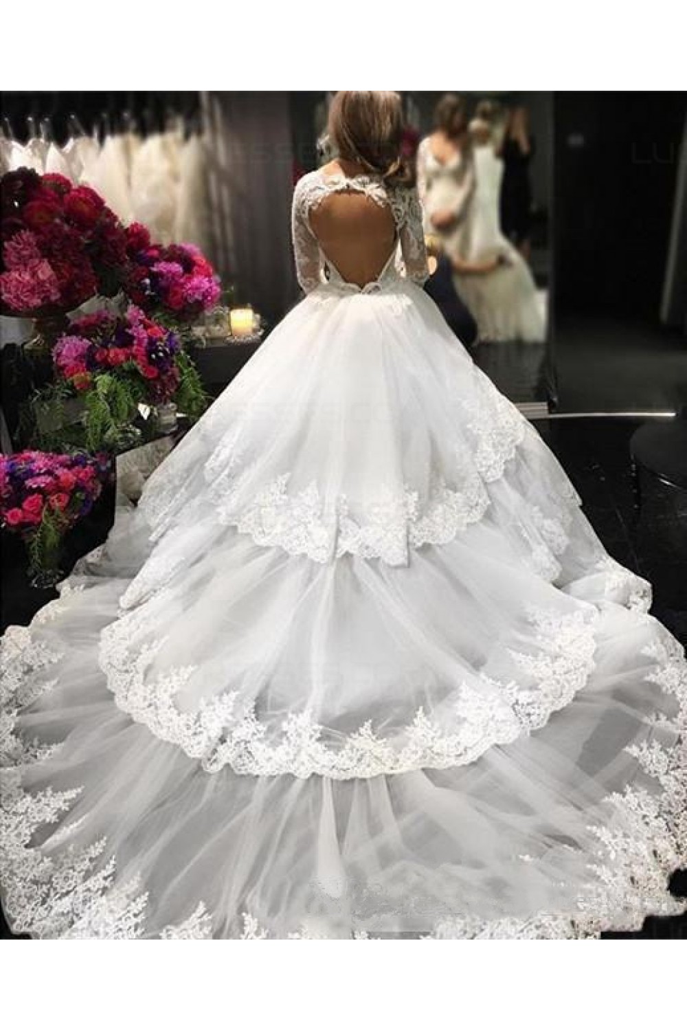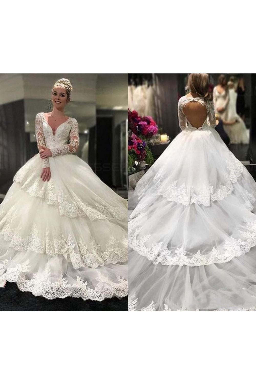 Long Sleeves Lace V-Neck Keyhole Back Wedding Dresses Bridal Gowns 3030258