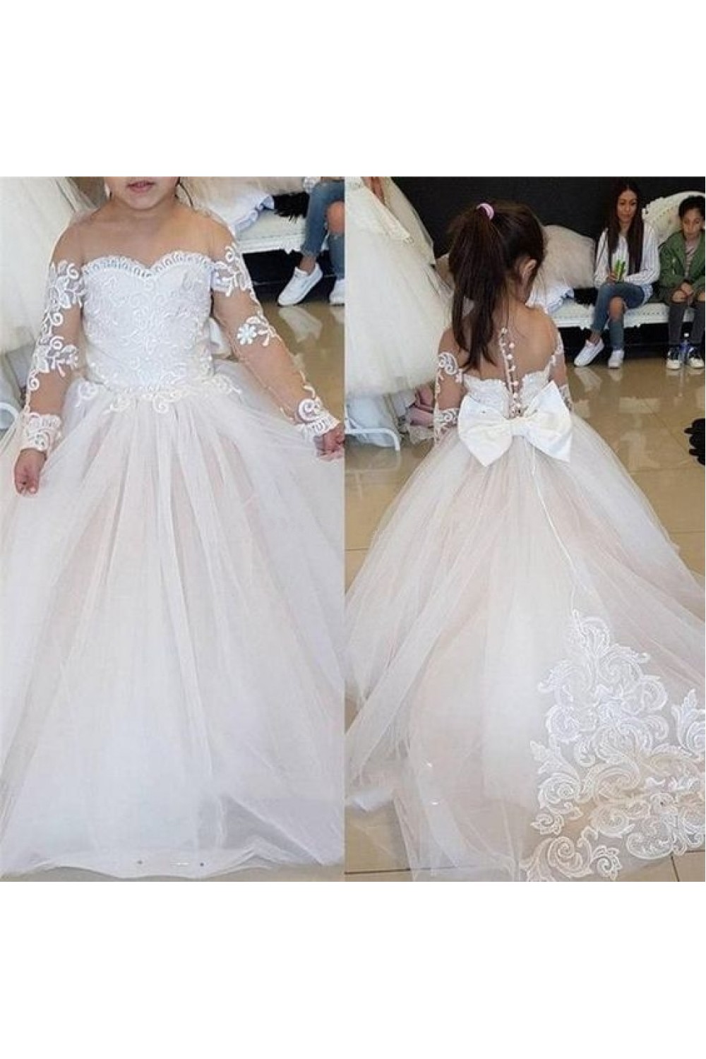 Long Sleeves Lace and Tulle Flower Girl Dresses 905056
