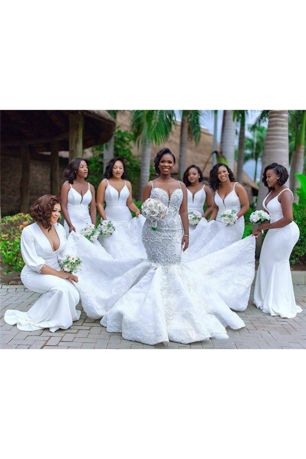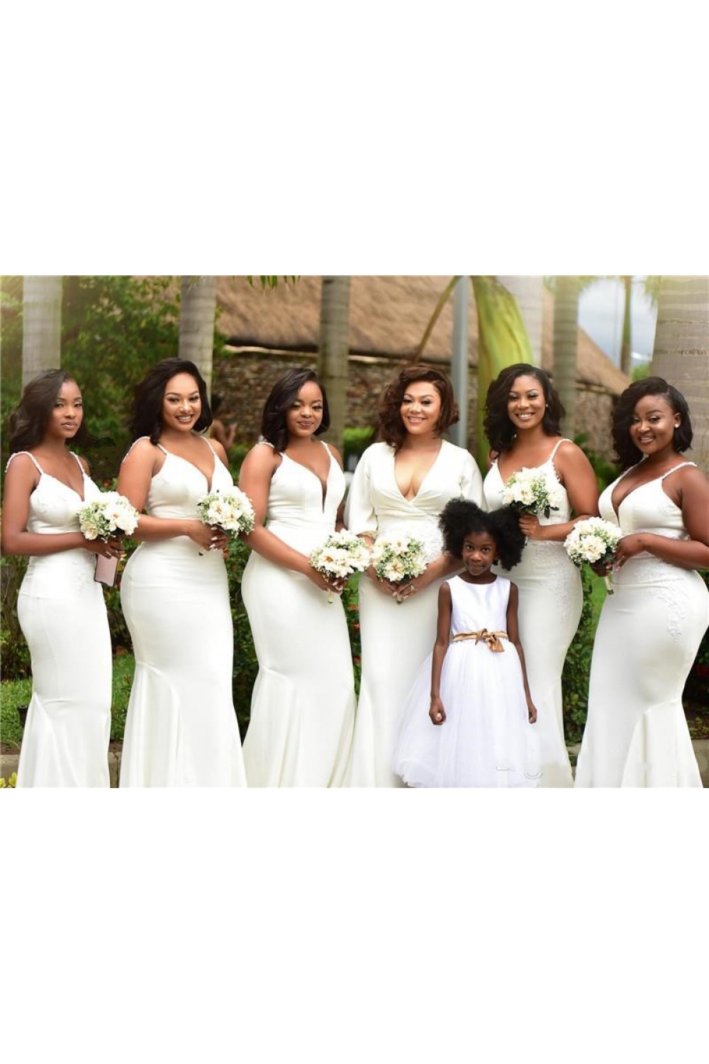 Long White Mermaid Spaghetti Straps Bridesmaid Dresses 902337