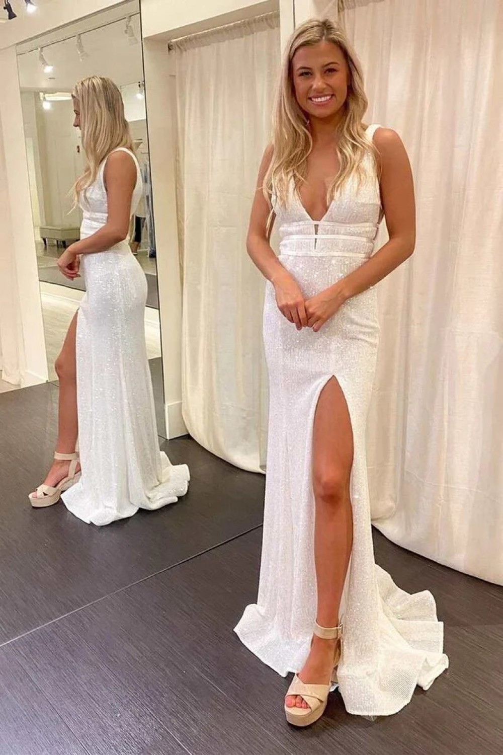 Long White Sparkle Sequin Prom Dresses 801161