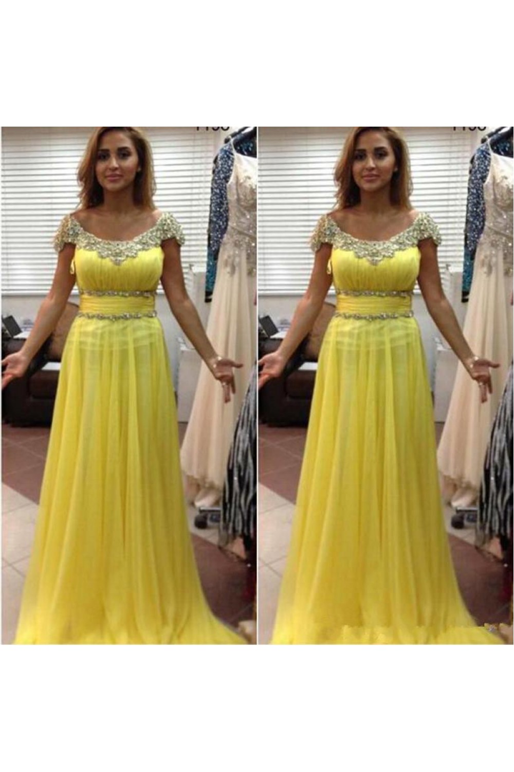 Long Yellow Chiffon and Lace Mother of the Bride Dresses 702154