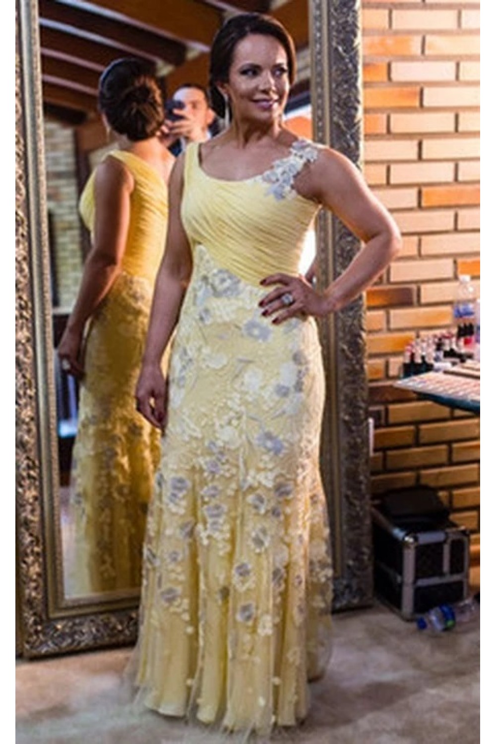 Long Yellow Lace Mother of the Bride Dresses 702190