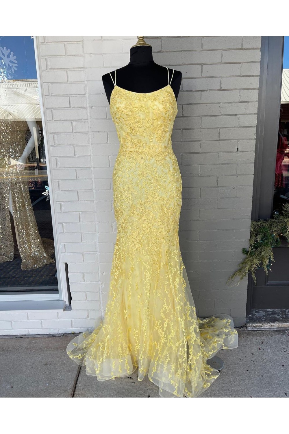 Long Yellow Mermaid Lace Prom Dresses Formal Evening Gowns 901764