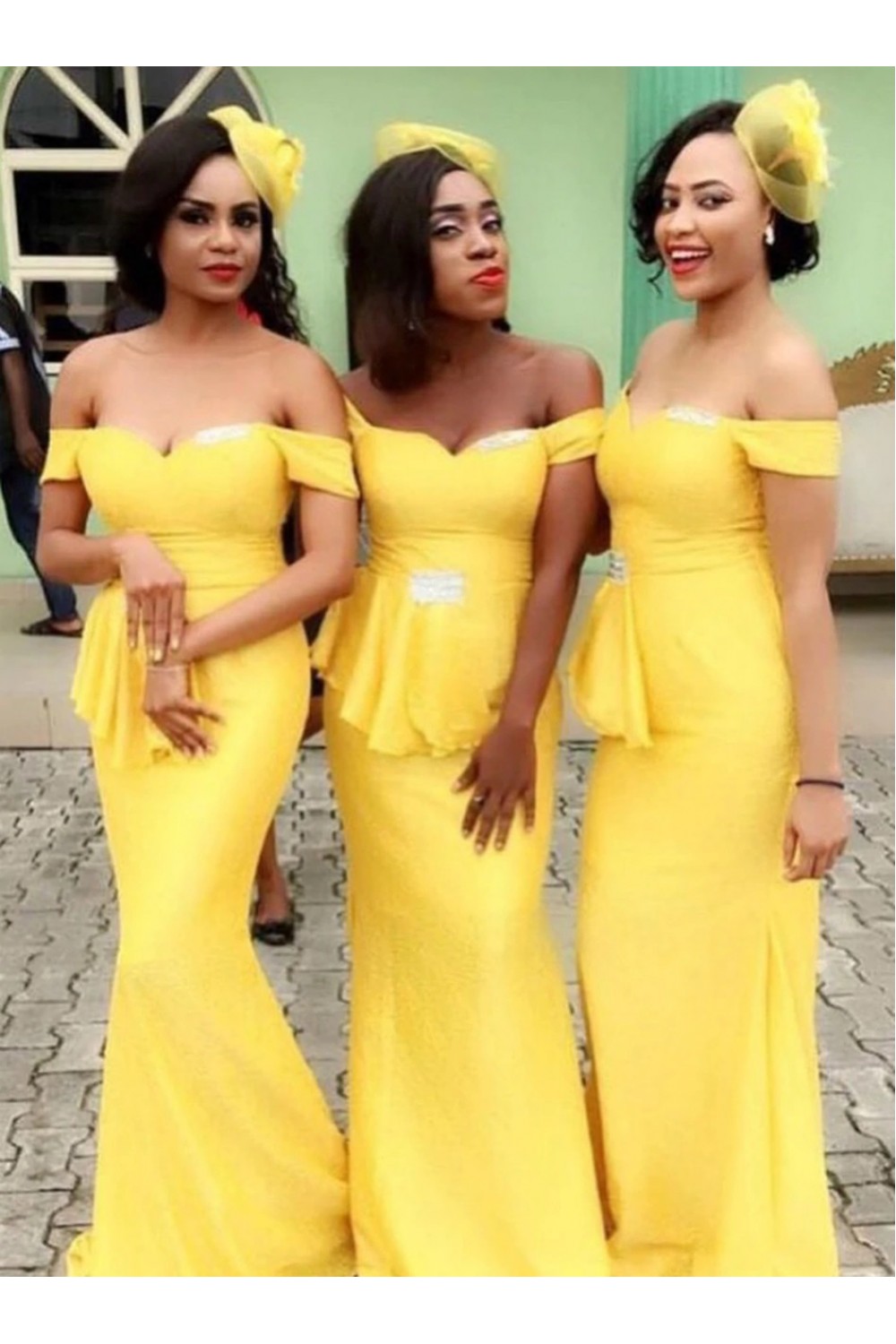 Long Yellow Mermaid Off the Shoulder Bridesmaid Dresses 902294