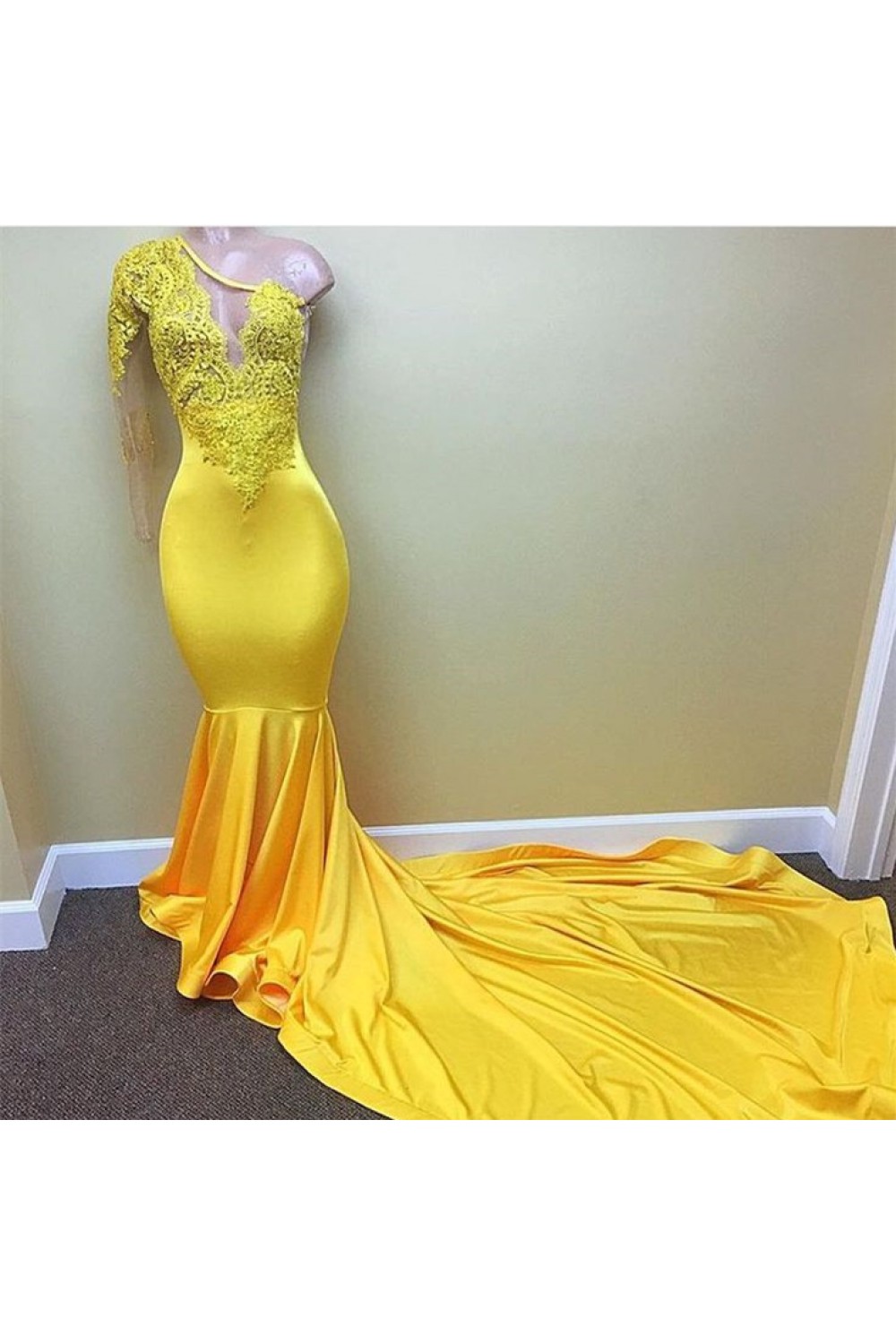 Long Yellow Mermaid One Shoulder Prom Dresses Formal Evening Gowns 901597