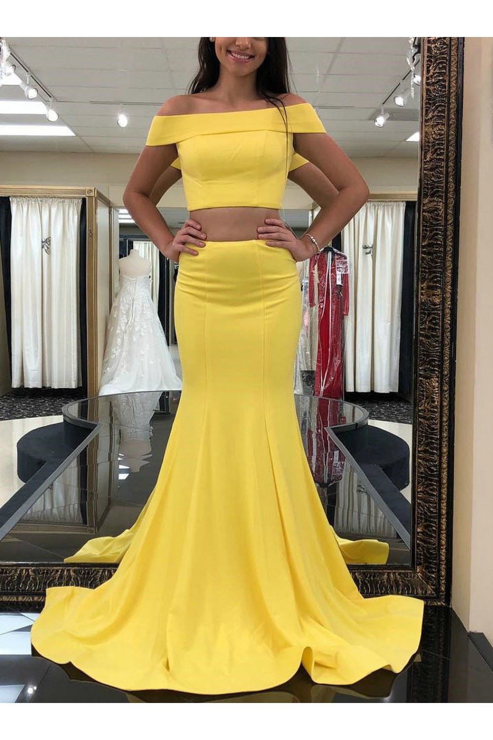 Long Yellow Mermaid Two Pieces Prom Dresses Formal Evening Gowns 6011477