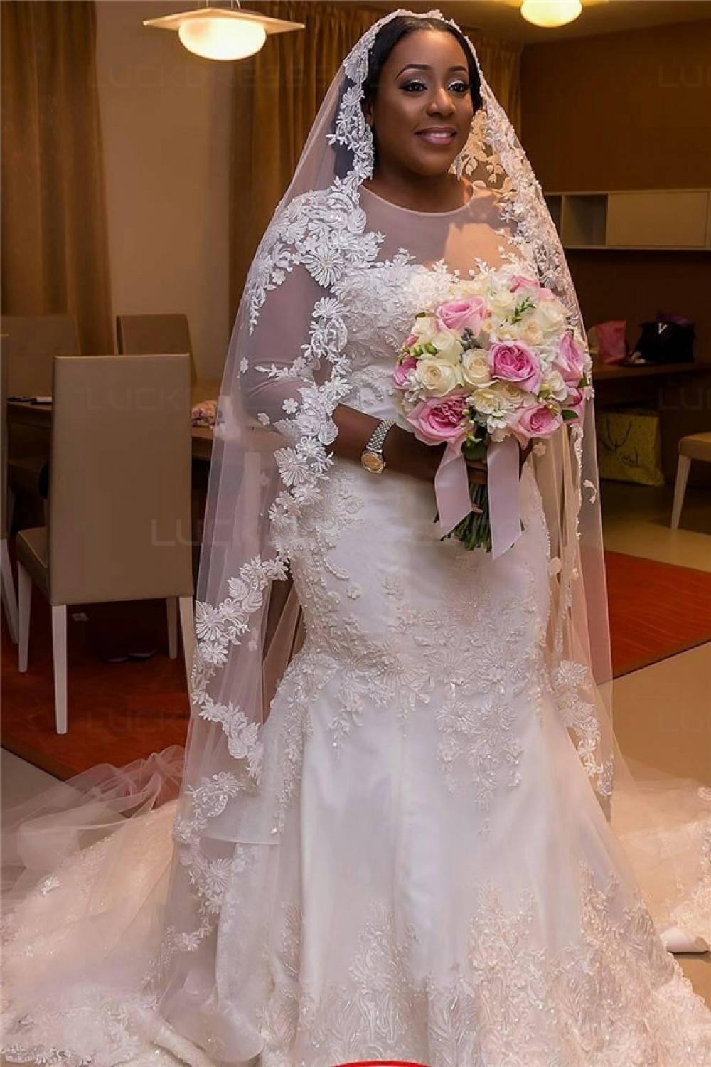Mermaid 3/4 Length Sleeves Plus Size Lace Wedding Dresses Bridal Gowns 3030053