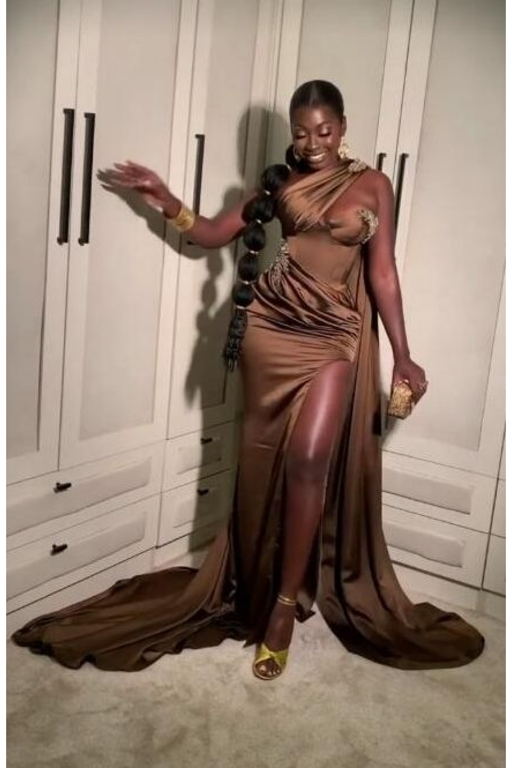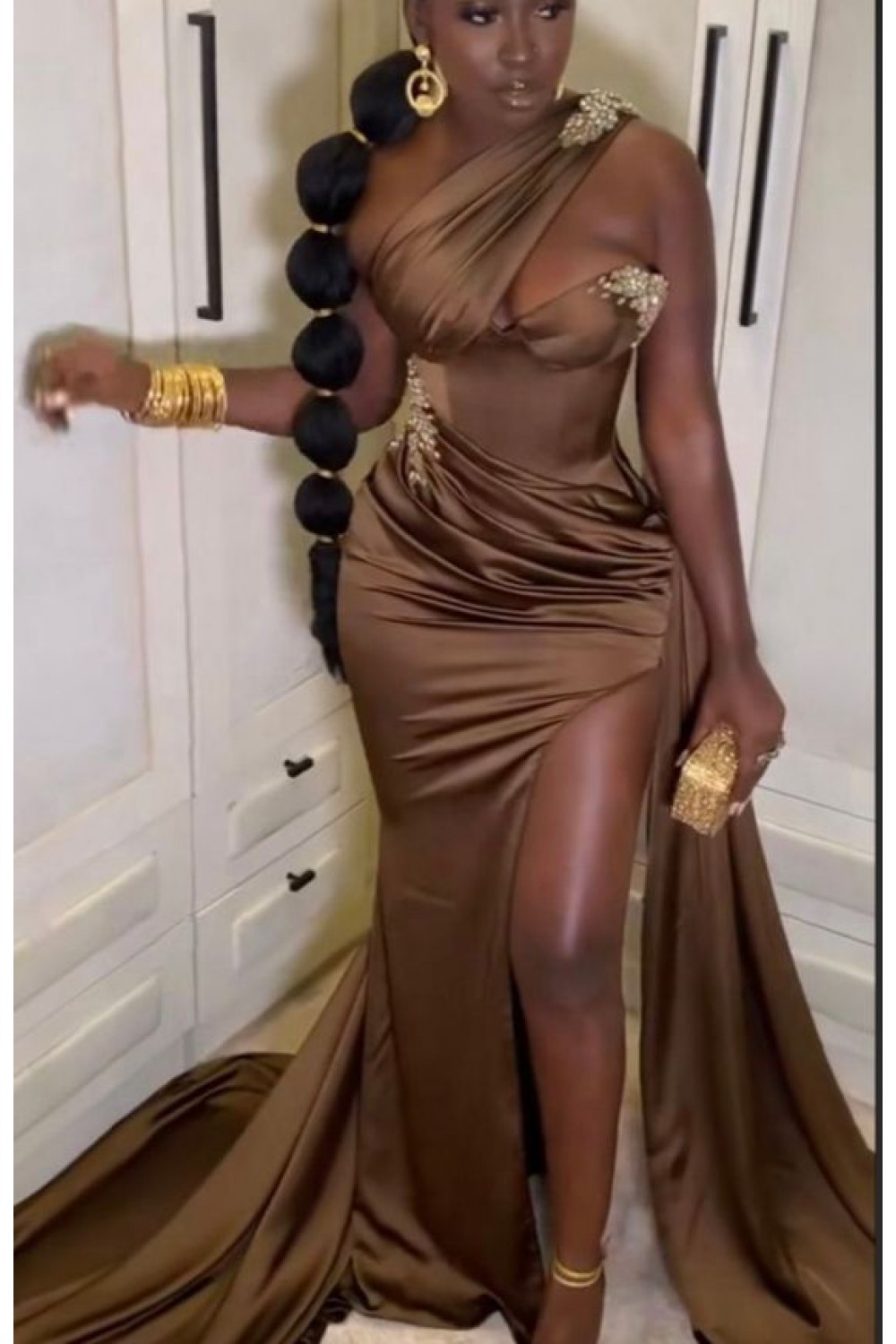 Mermaid Beaded One Shoulder High Slit Long Prom Dresses 801302