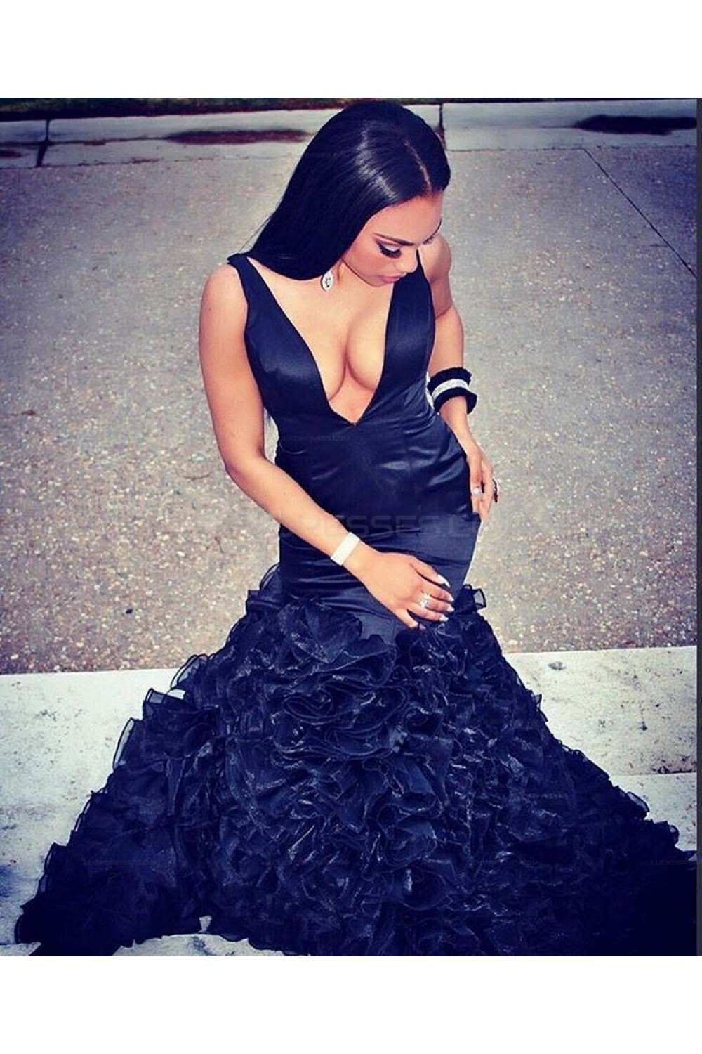 Mermaid Deep V-Neck Long Prom Evening Party Dresses 3020625