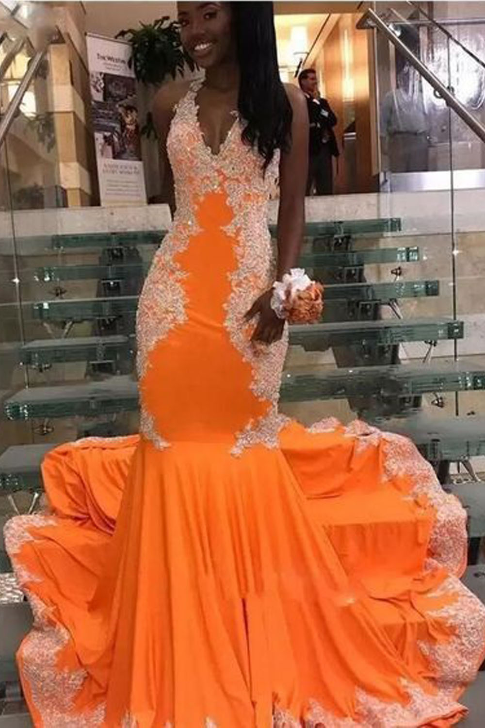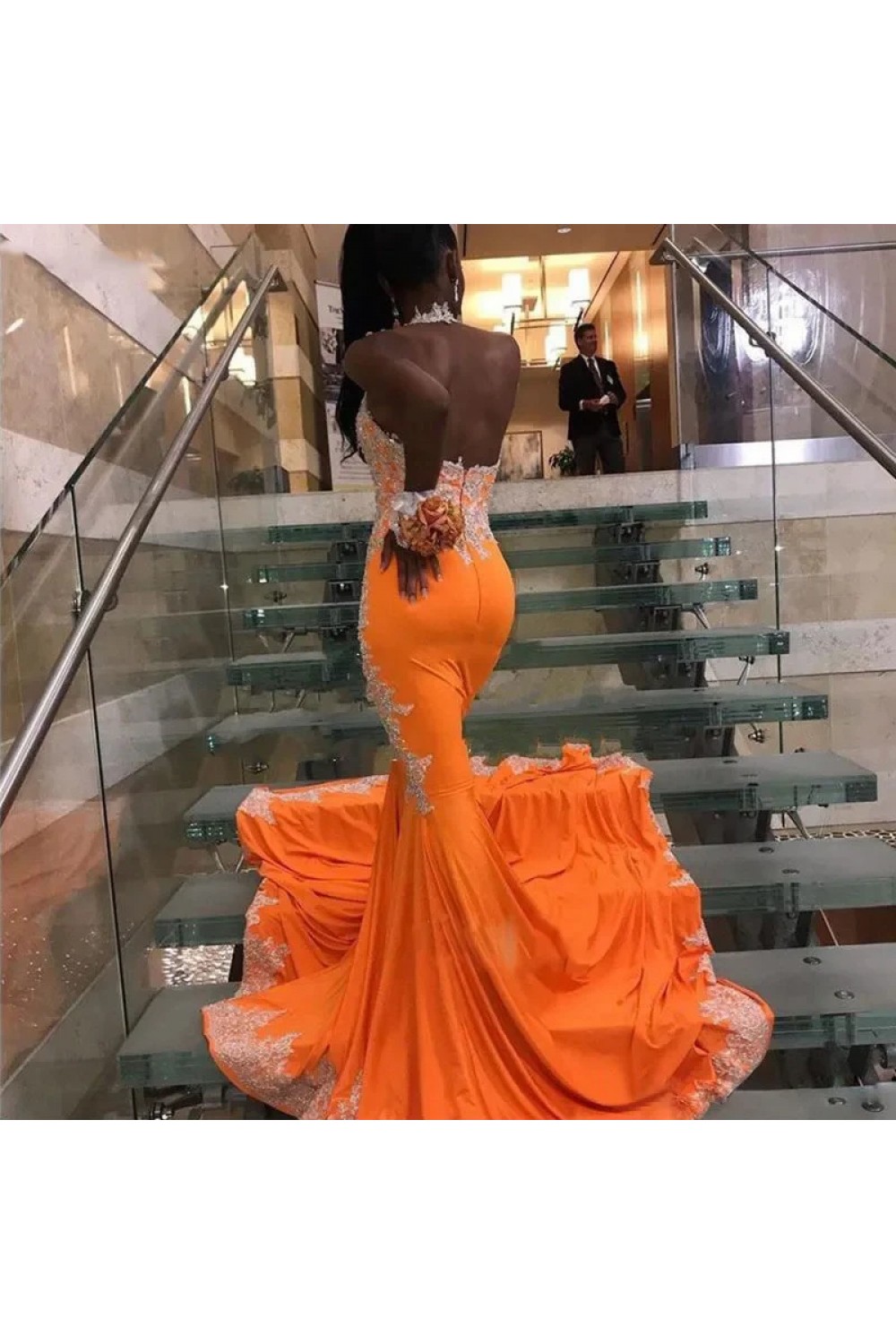 Mermaid Halter Lace Long Prom Dresses 801149