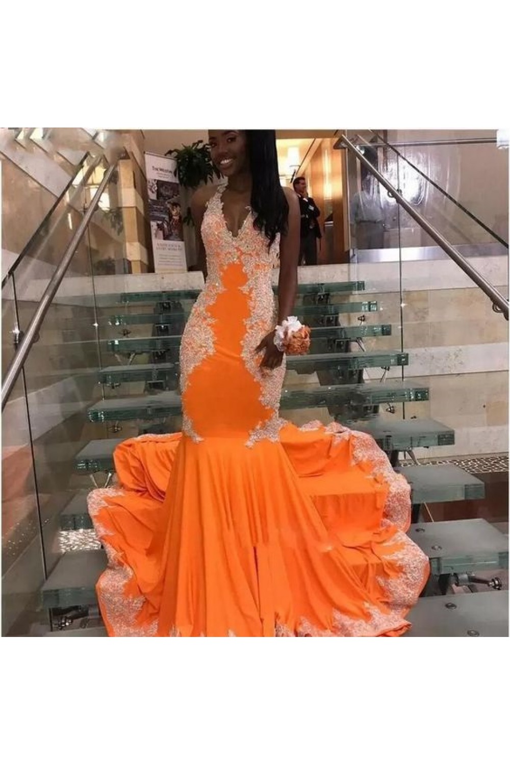 -60% Mermaid Halter Lace Long Prom Dresses 801149