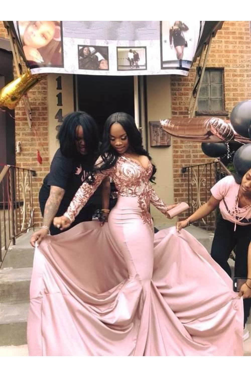 Mermaid Lace Long Sleeves Long Prom Dresses 801195