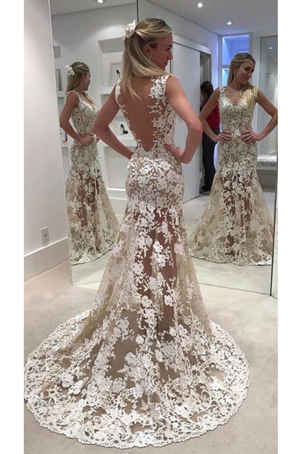 Mermaid Lace Long Wedding Dresses Bridal Gowns 903077