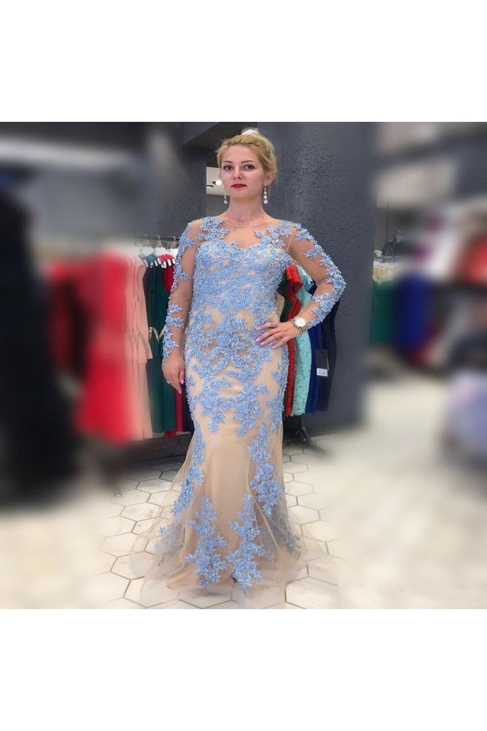 Mermaid Lace Mother of the Bride Dresses with Long Sleeves 702124