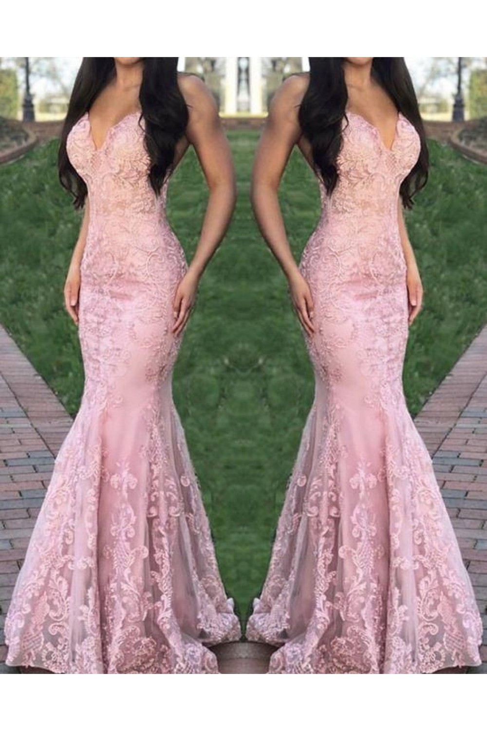 Mermaid Lace V-Neck Long Prom Dresses Formal Evening Gowns 6011074