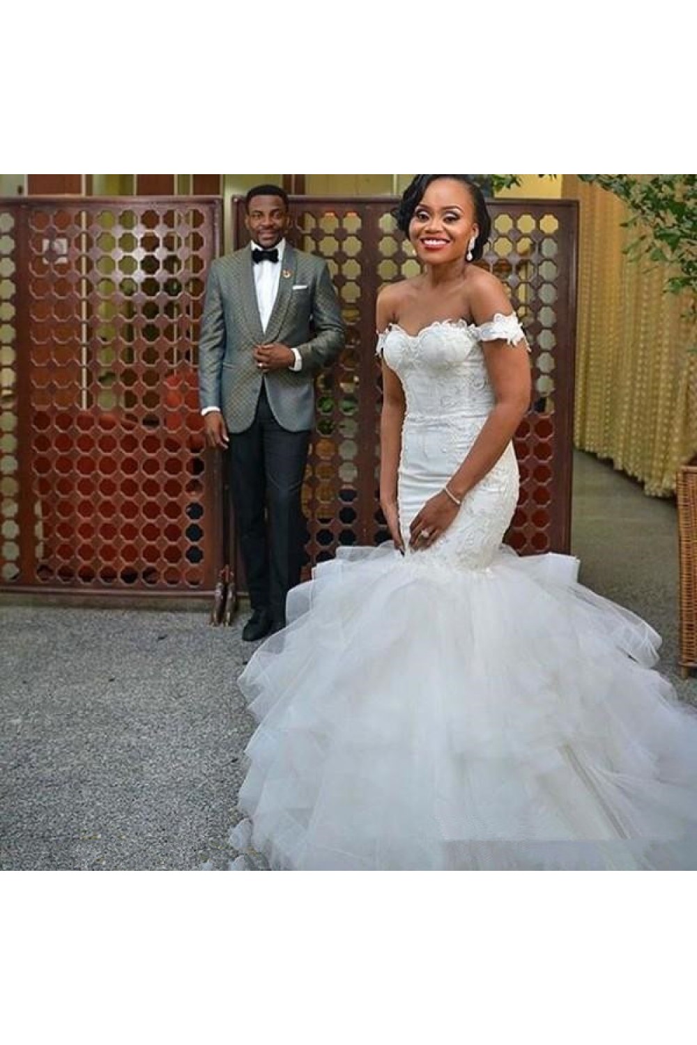 Mermaid Lace and Tulle Off the Shoulder Wedding Dresses Bridal Gowns 903210