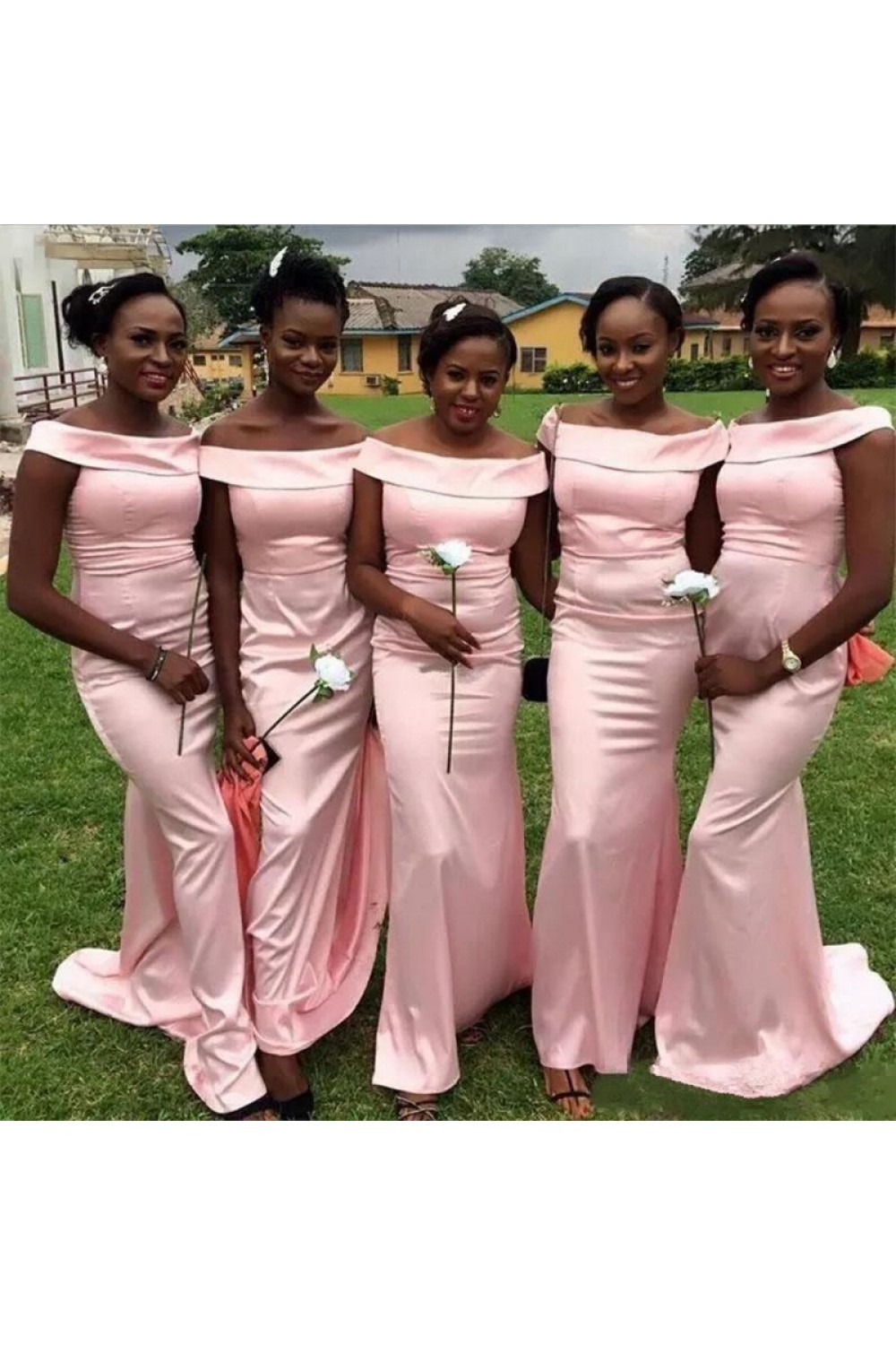 Mermaid Long Pink Off-the-Shoulder Bridesmaid Dresses 3010342