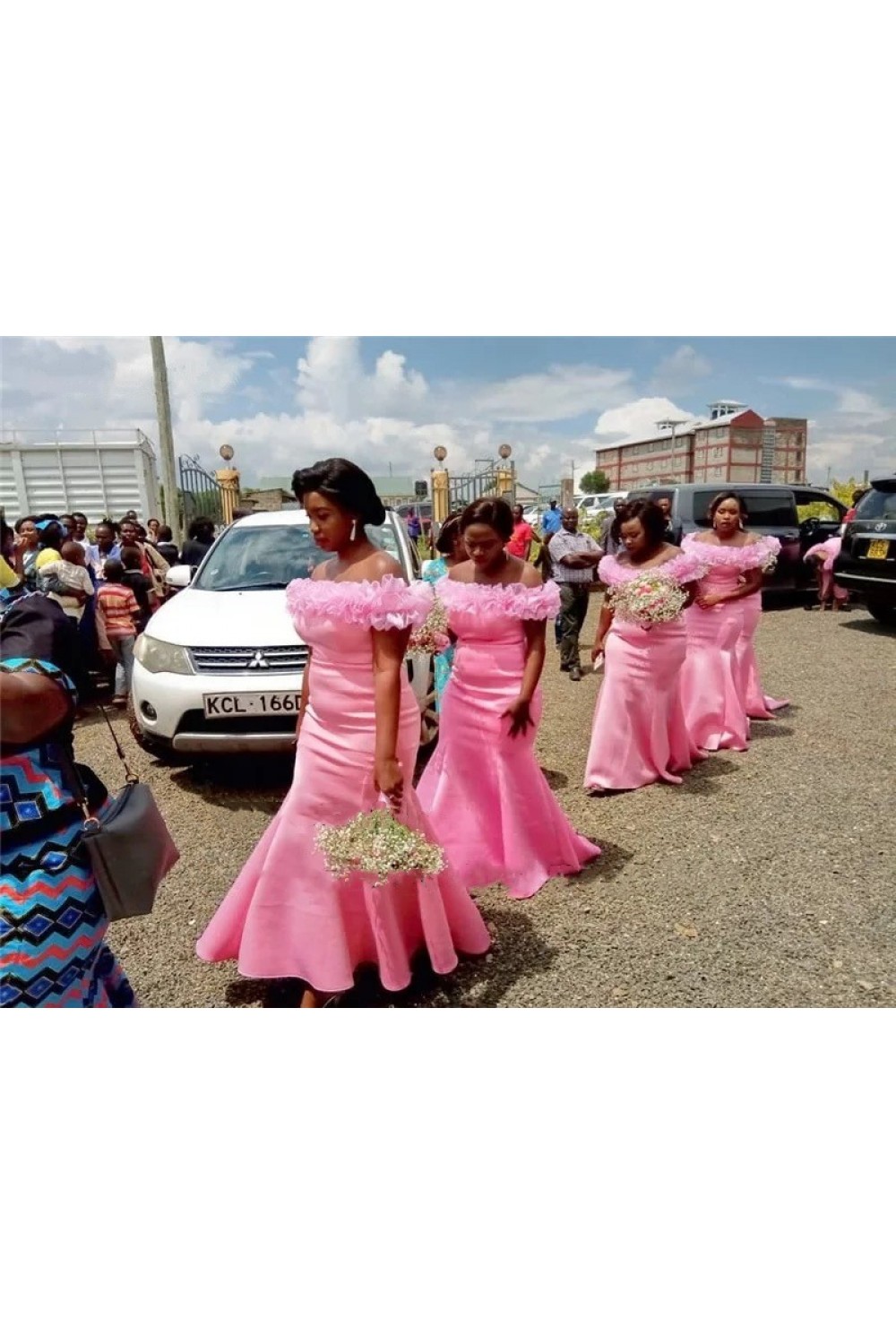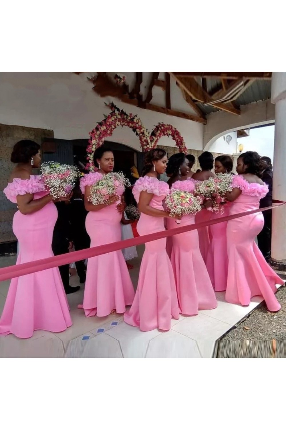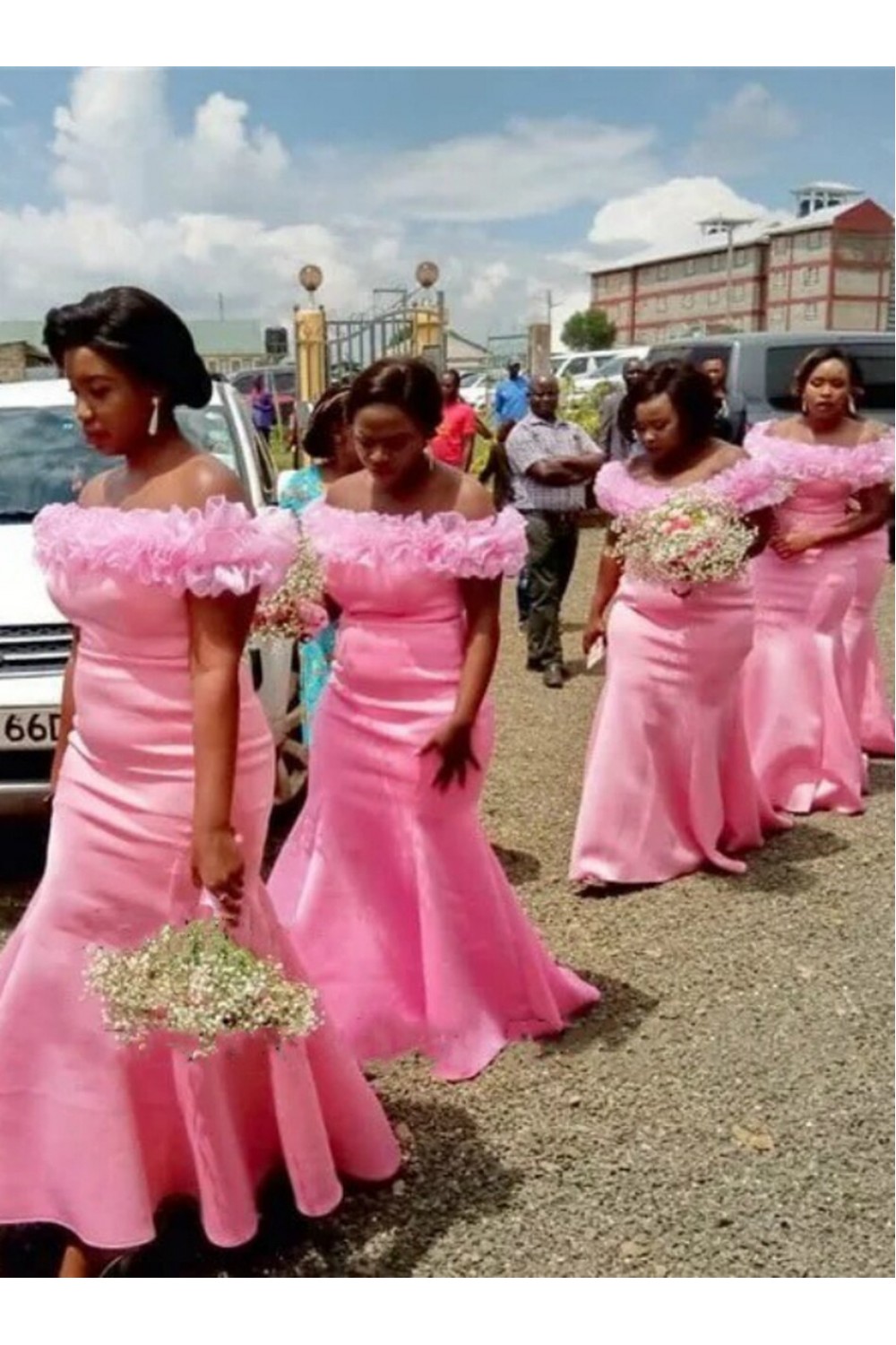 Mermaid Long Pink Off the Shoulder Bridesmaid Dresses 902159