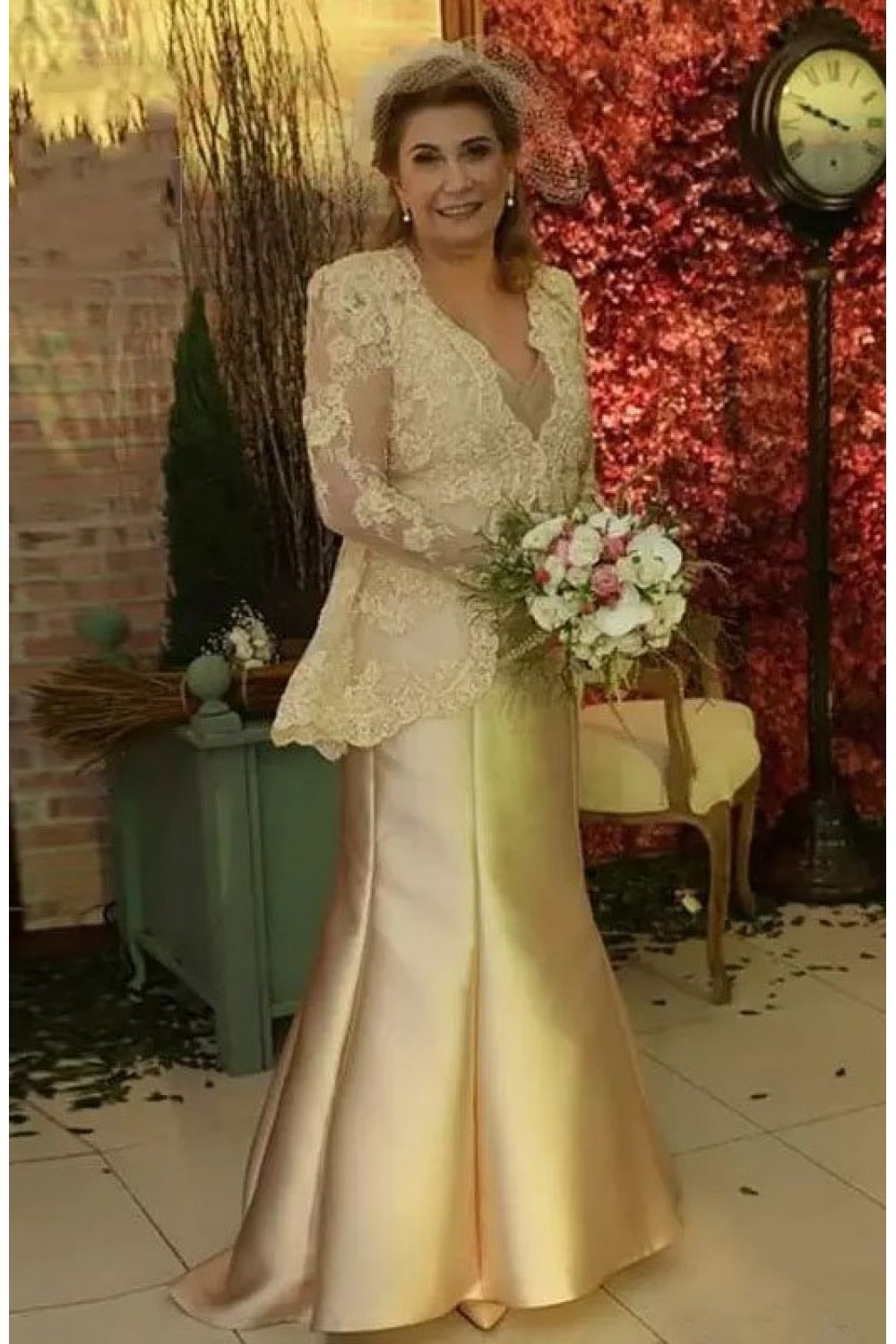 Mermaid Long Sleeves Lace and Satin Mother of the Bride Dresses with Sleeves 702110