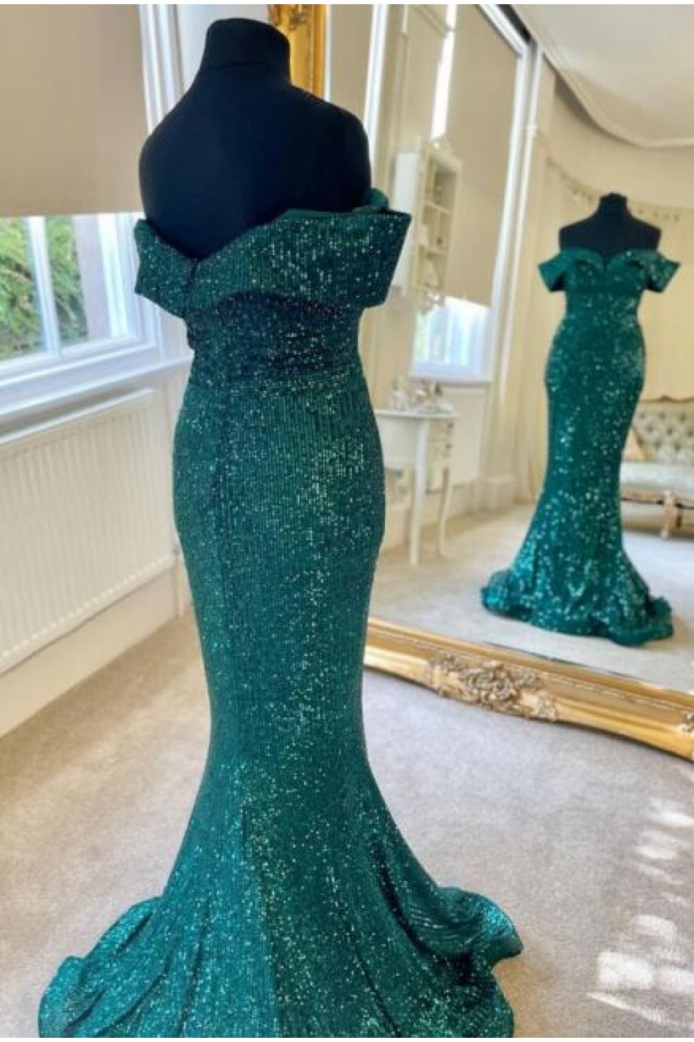 Mermaid Off the Shoulder Sparkle Long Prom Dress Formal Evening Gowns 901386