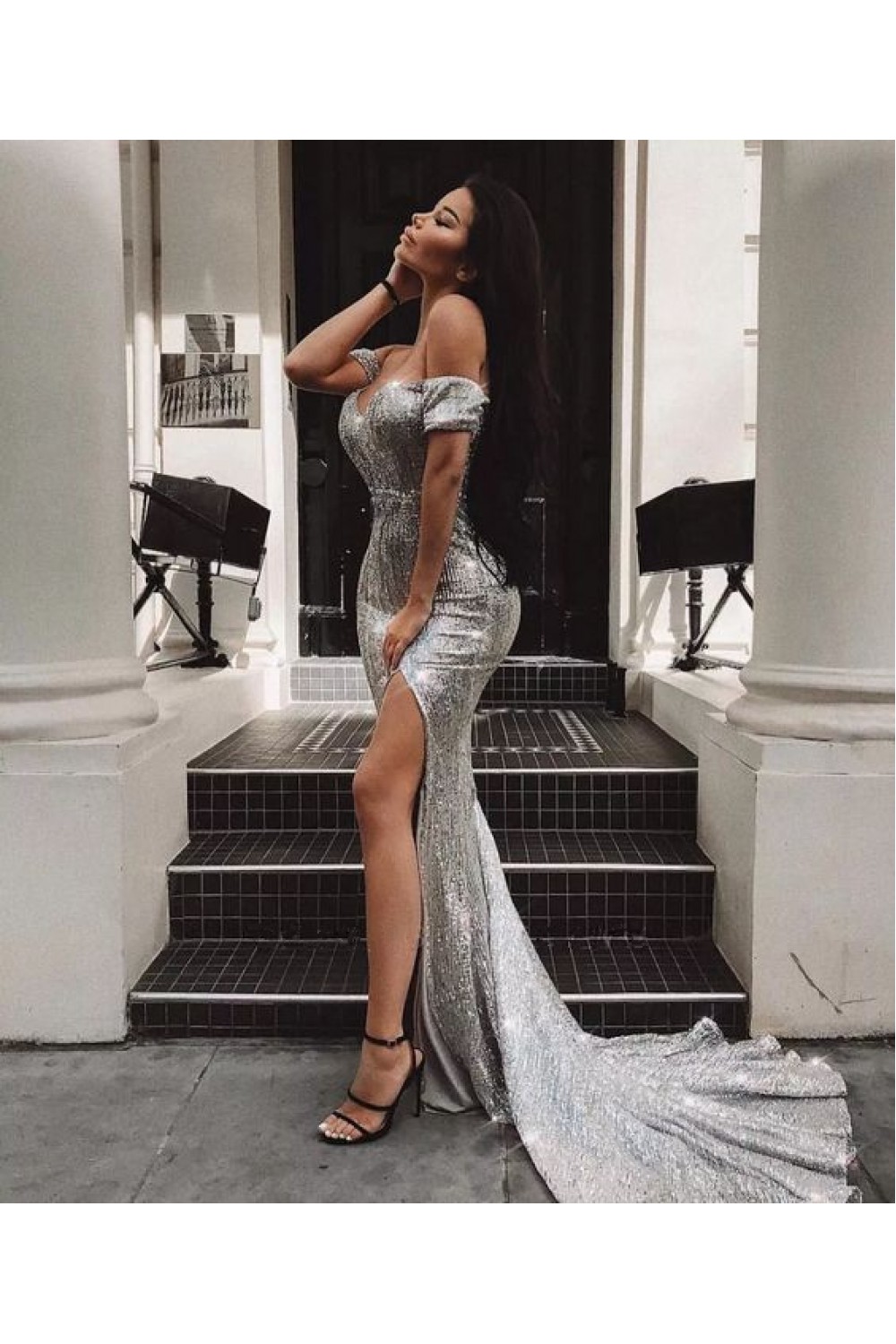 Mermaid Off-the-Shoulder Sparkling Long Prom Dress Formal Evening Dresses 601428