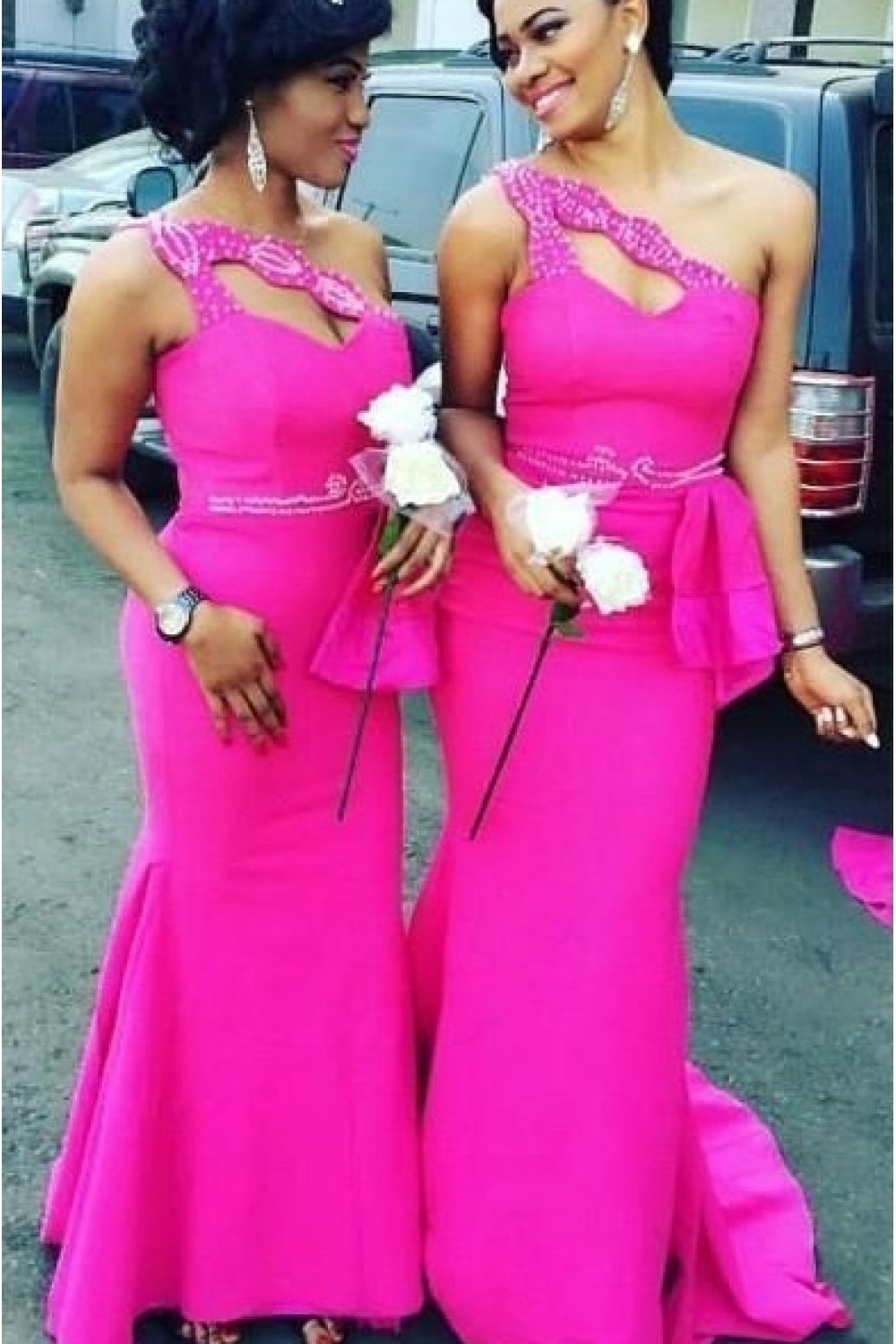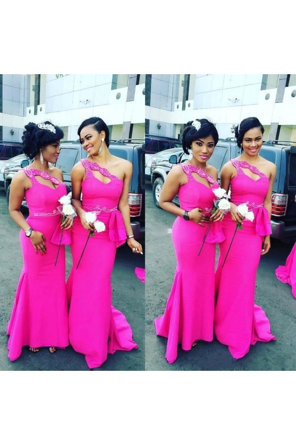 Mermaid One-Shoulder Beaded Long Bridesmaid Dresses 3010310