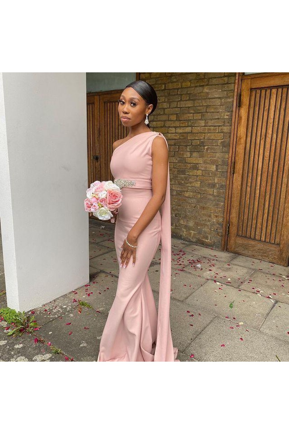 Mermaid One Shoulder Long Pink Bridesmaid Dresses 902501