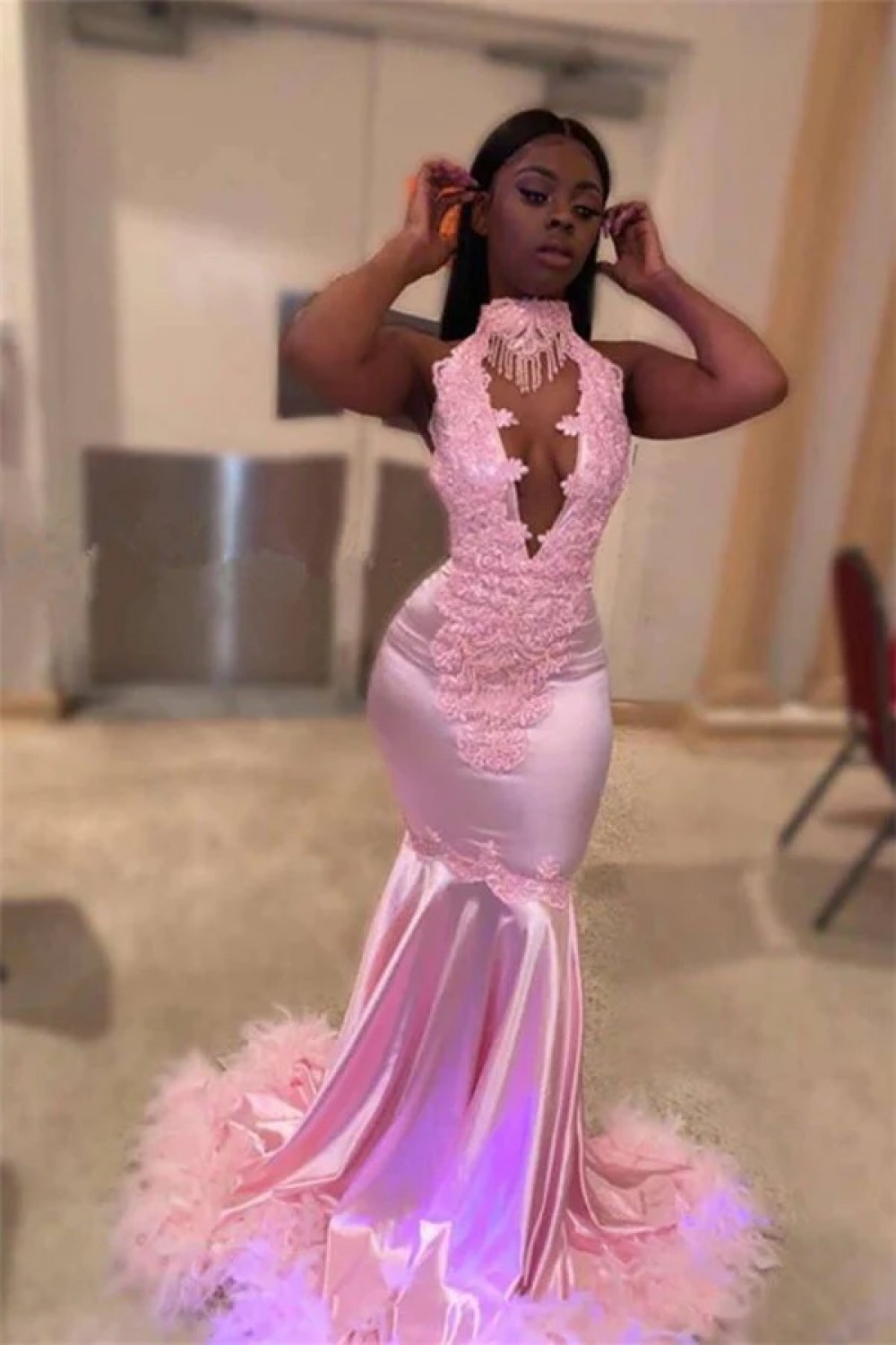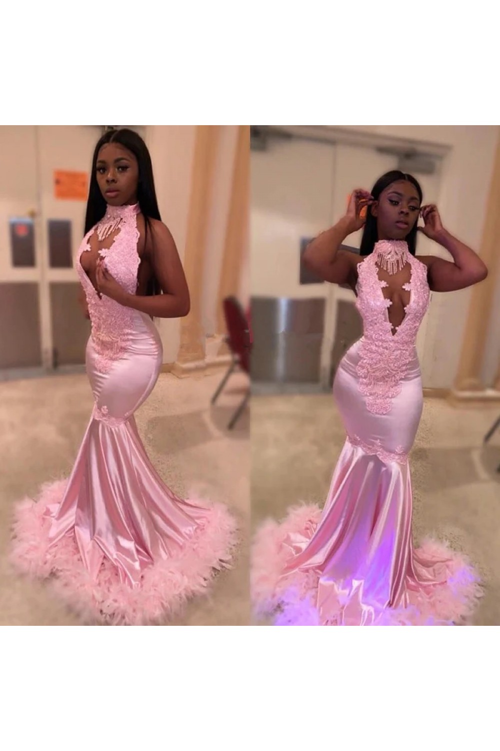 Mermaid Pink Lace Long Prom Dresses Formal Evening Dresses 901900