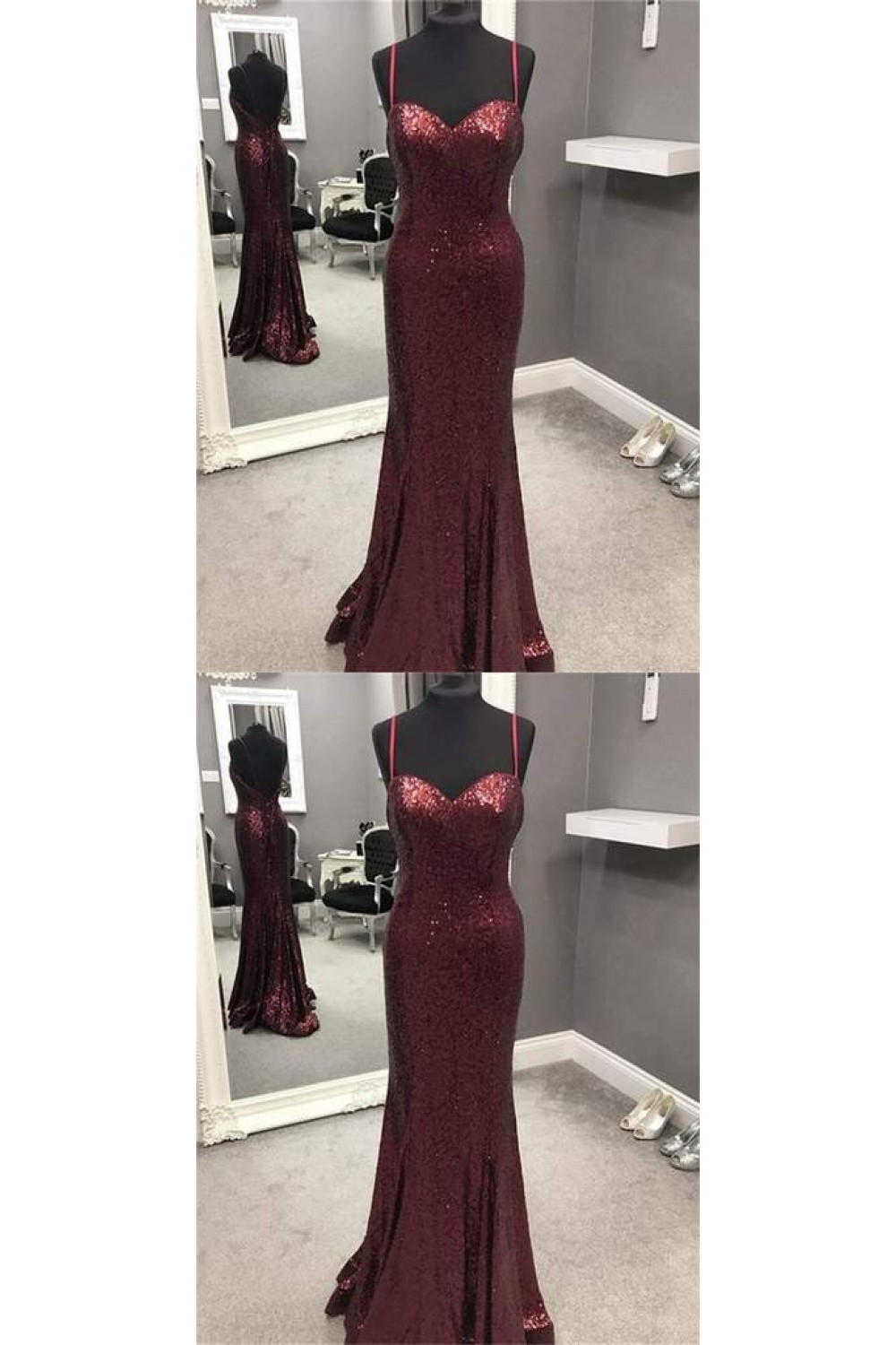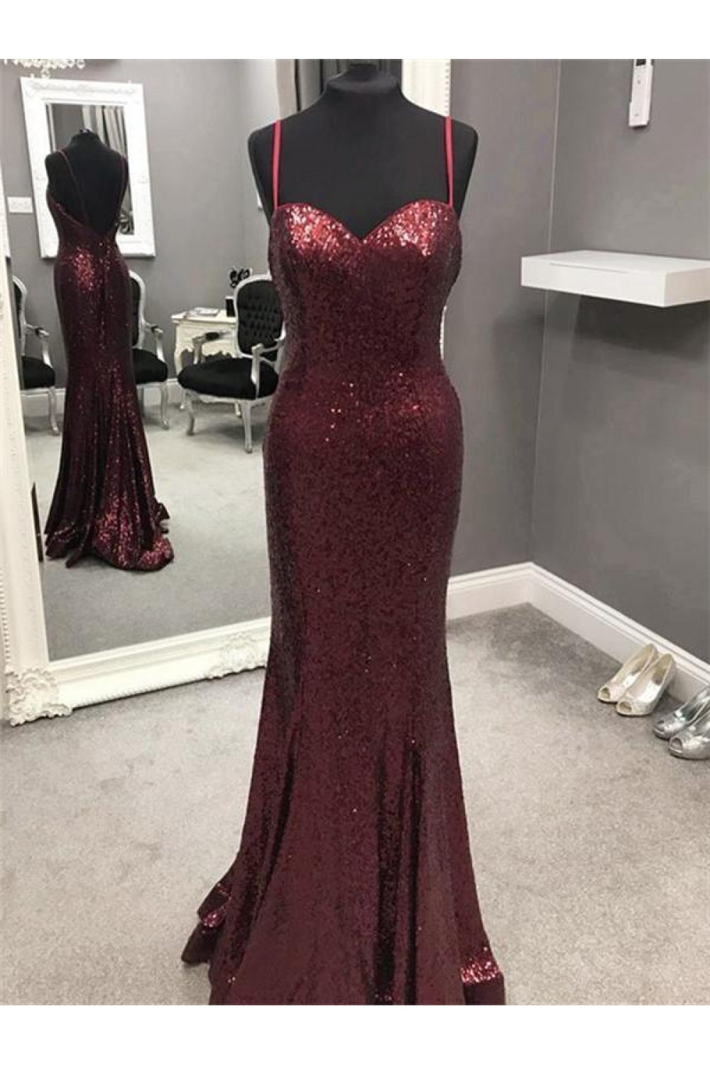 Mermaid Sequins Long Prom Dresses Formal Evening Dresses 601259