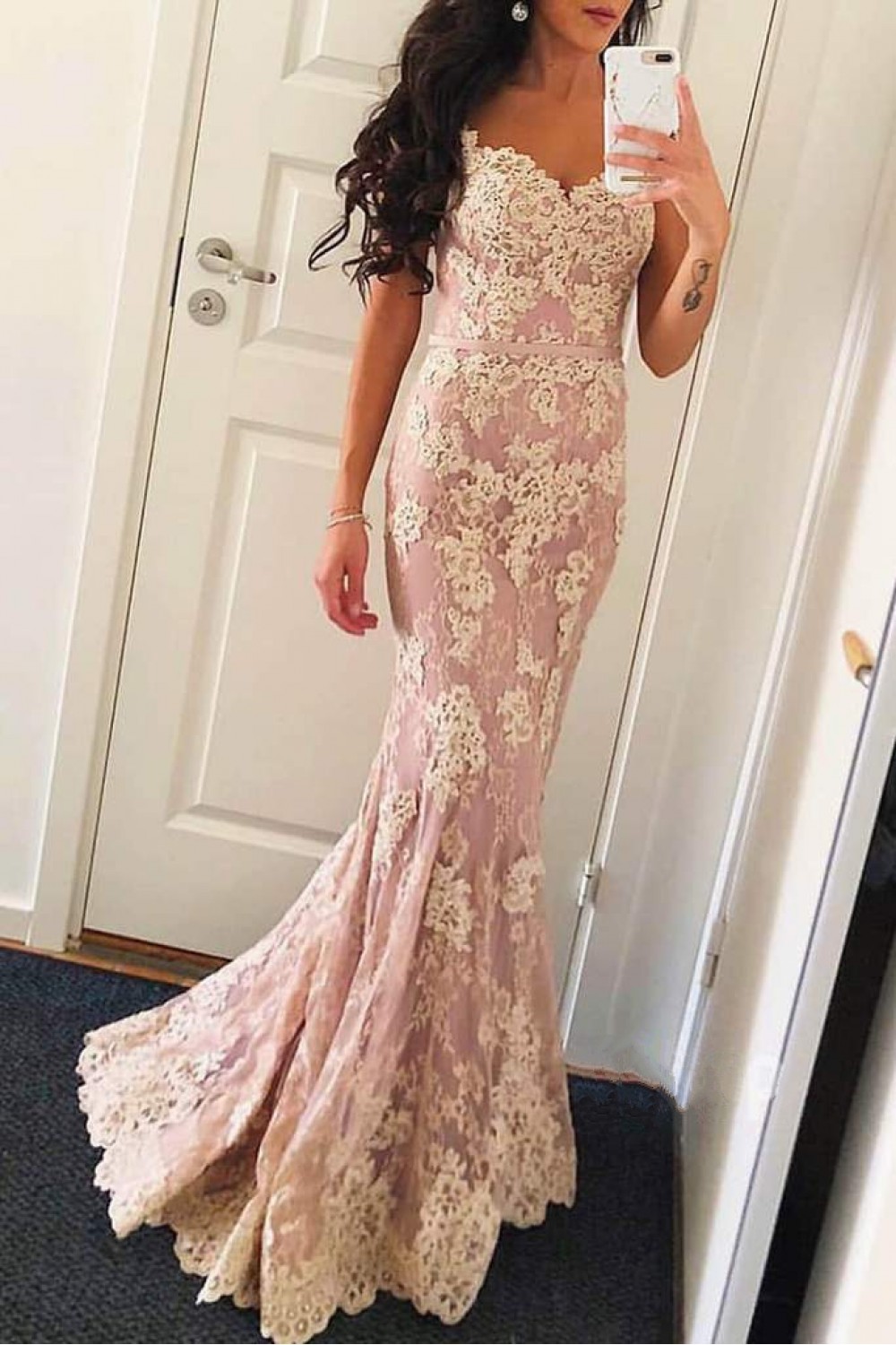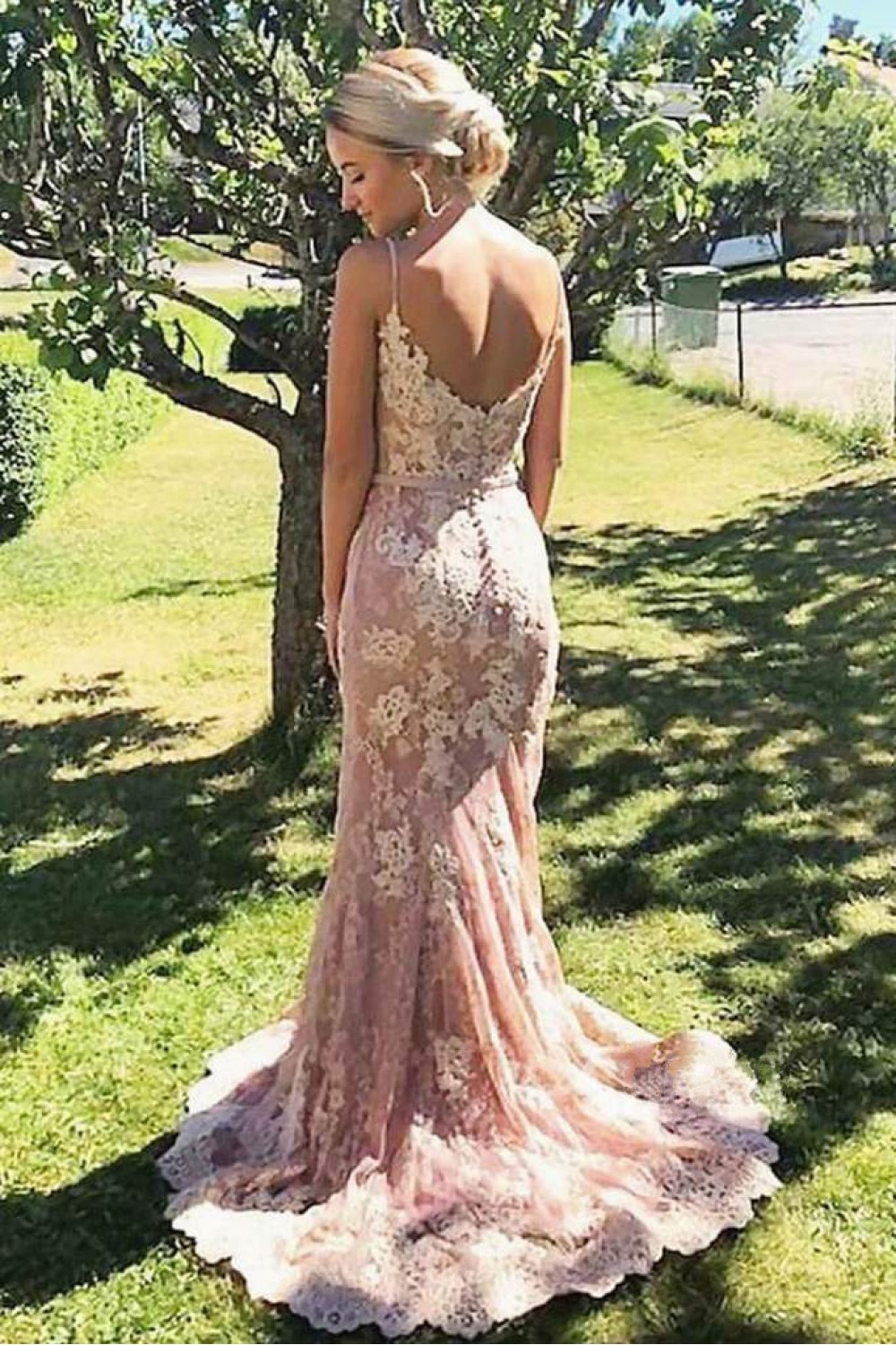 -59% Mermaid Spaghetti Straps Long Lace Beaded Prom Dresses Formal Evening Gowns 901608