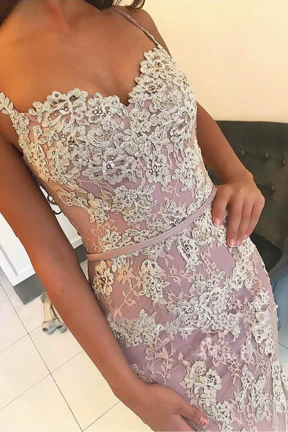 Mermaid Spaghetti Straps Long Lace Beaded Prom Dresses Formal Evening Gowns 901608