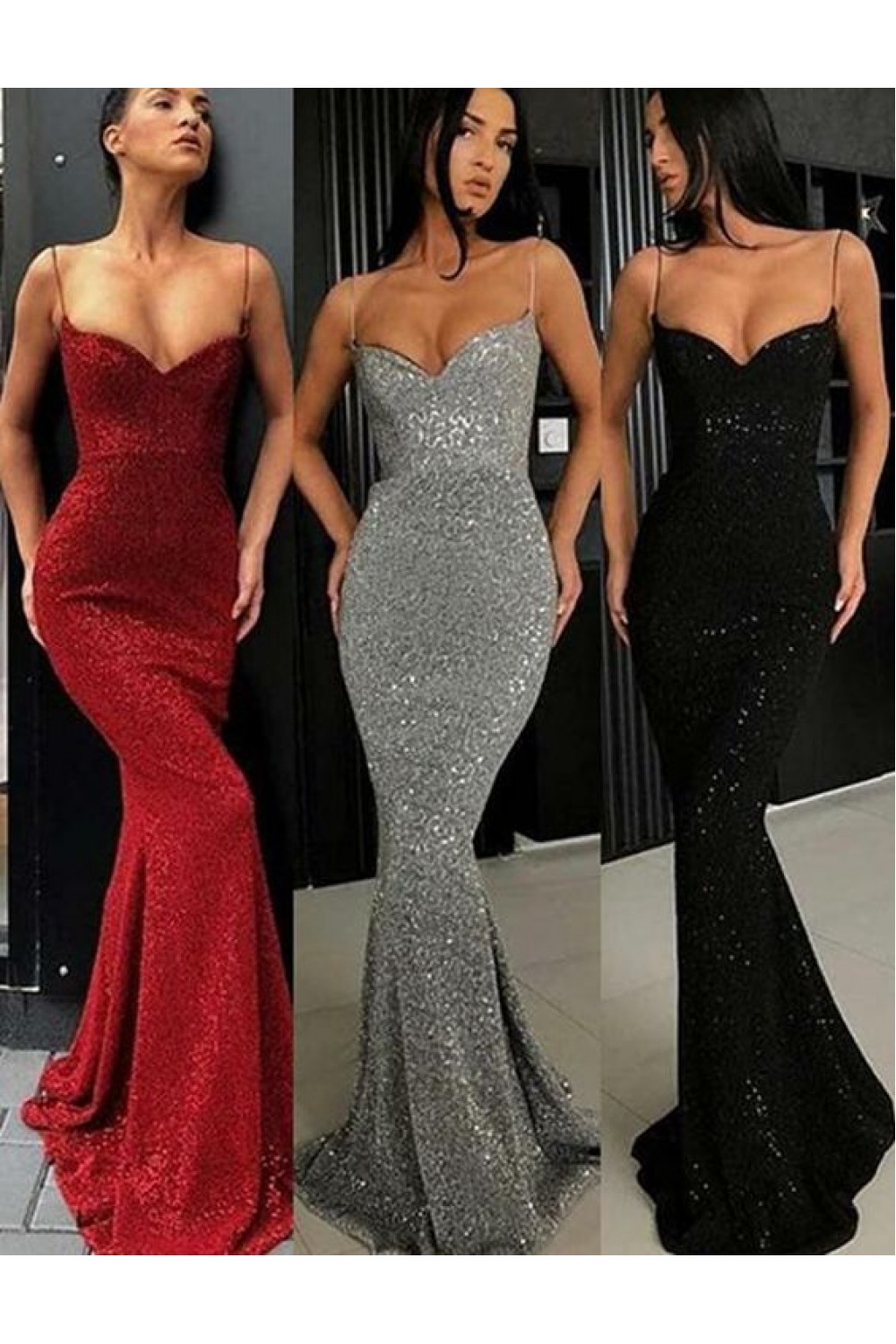 Mermaid Spaghetti Straps Sparkling Long Prom Dress Formal Evening Dresses 601429