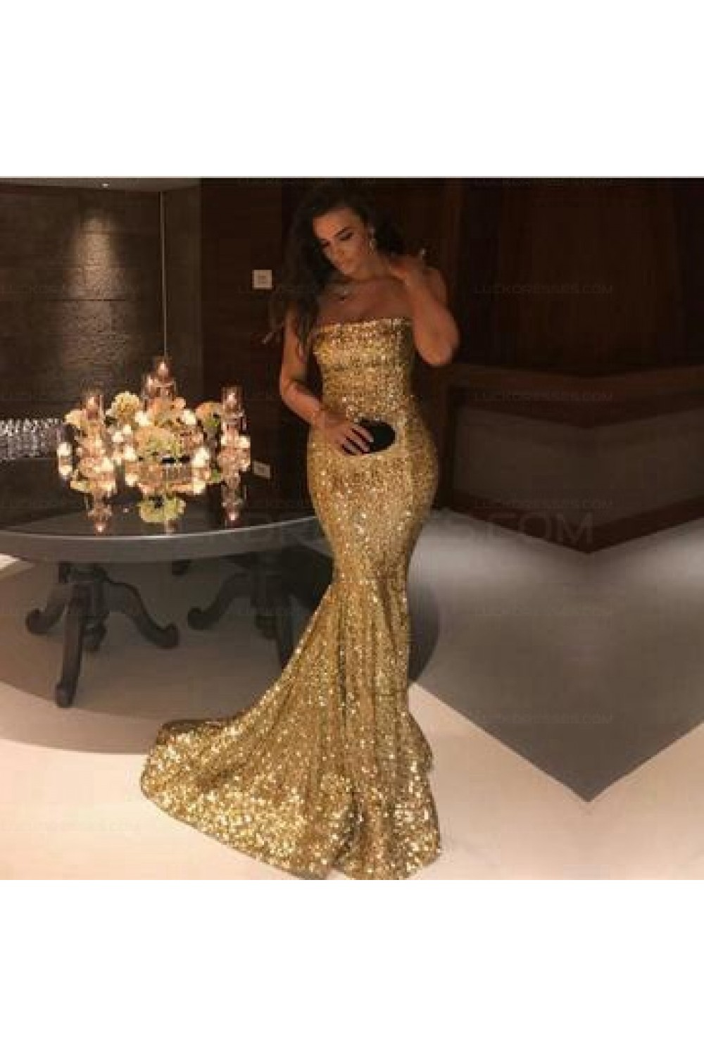 Mermaid Strapless Sequins Long Prom Evening Formal Dresses 3021548