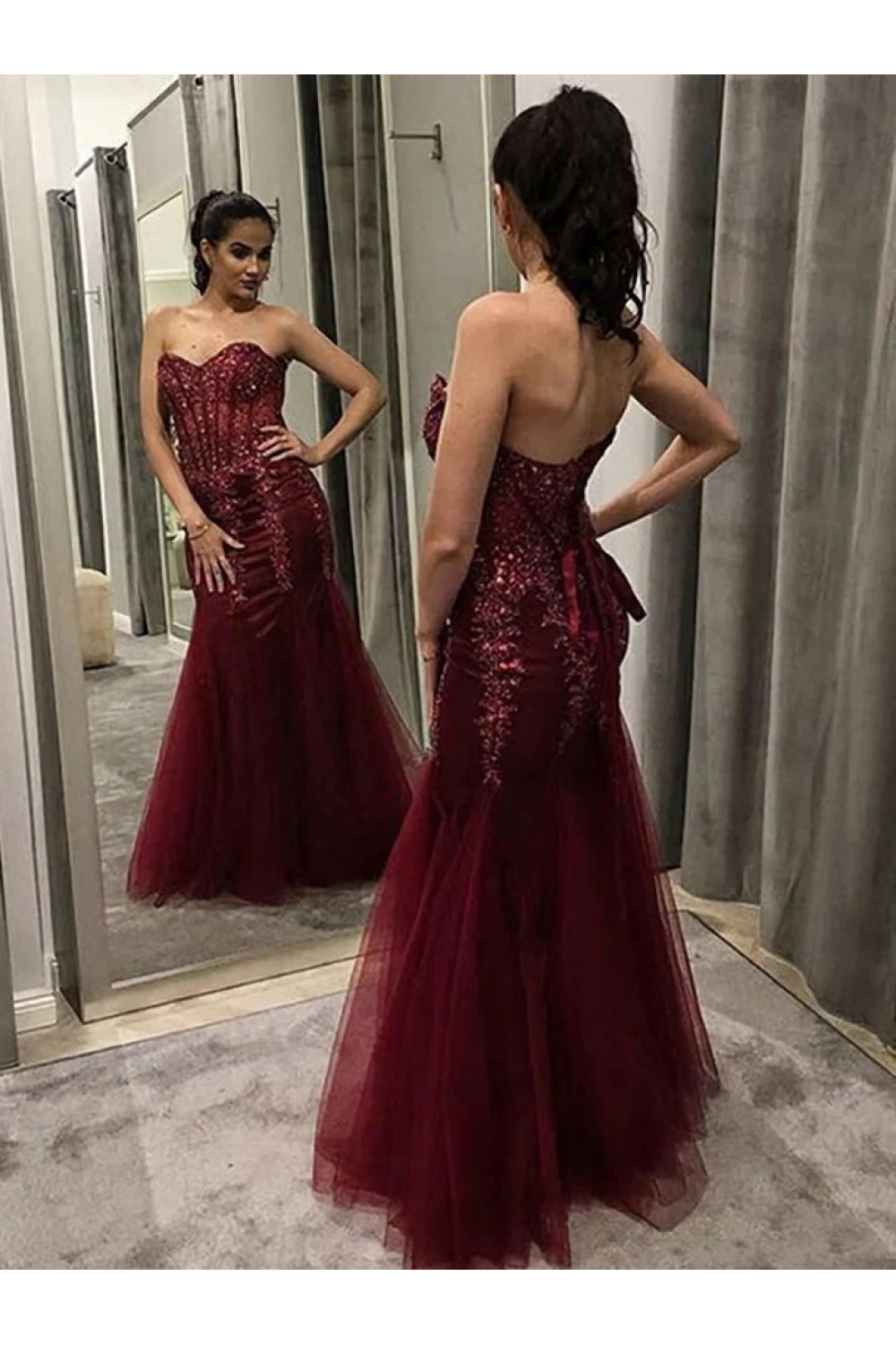 Mermaid Sweetheart Beaded Lace Long Prom Dresses 801082