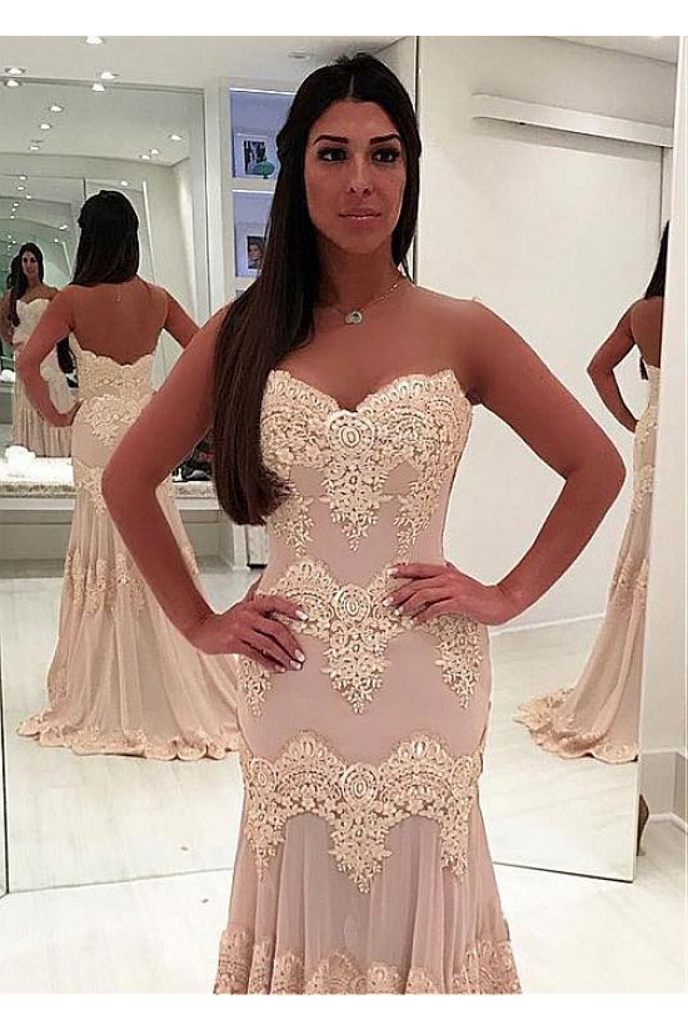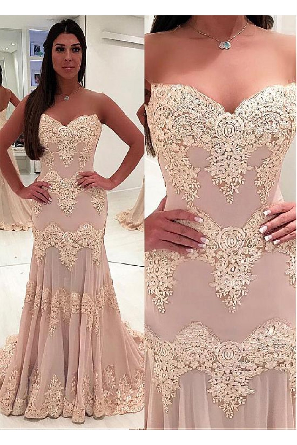 Mermaid Sweetheart Lace Long Prom Dresses Formal Evening Dresses 601226